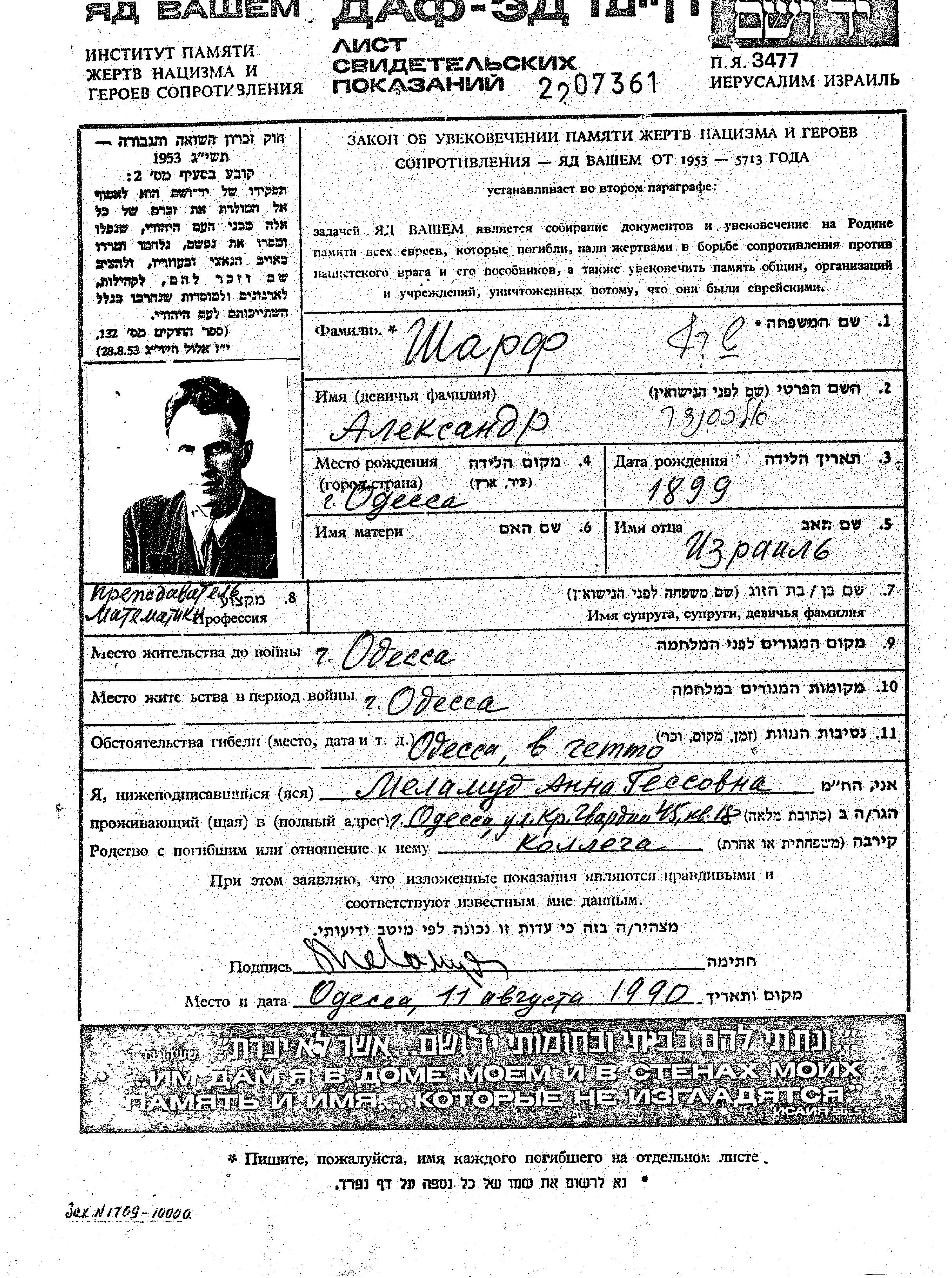 Scharf | Aleksandr | 1899 | Odessa, Ukraine (UdSSR) | Gedenkblatt |