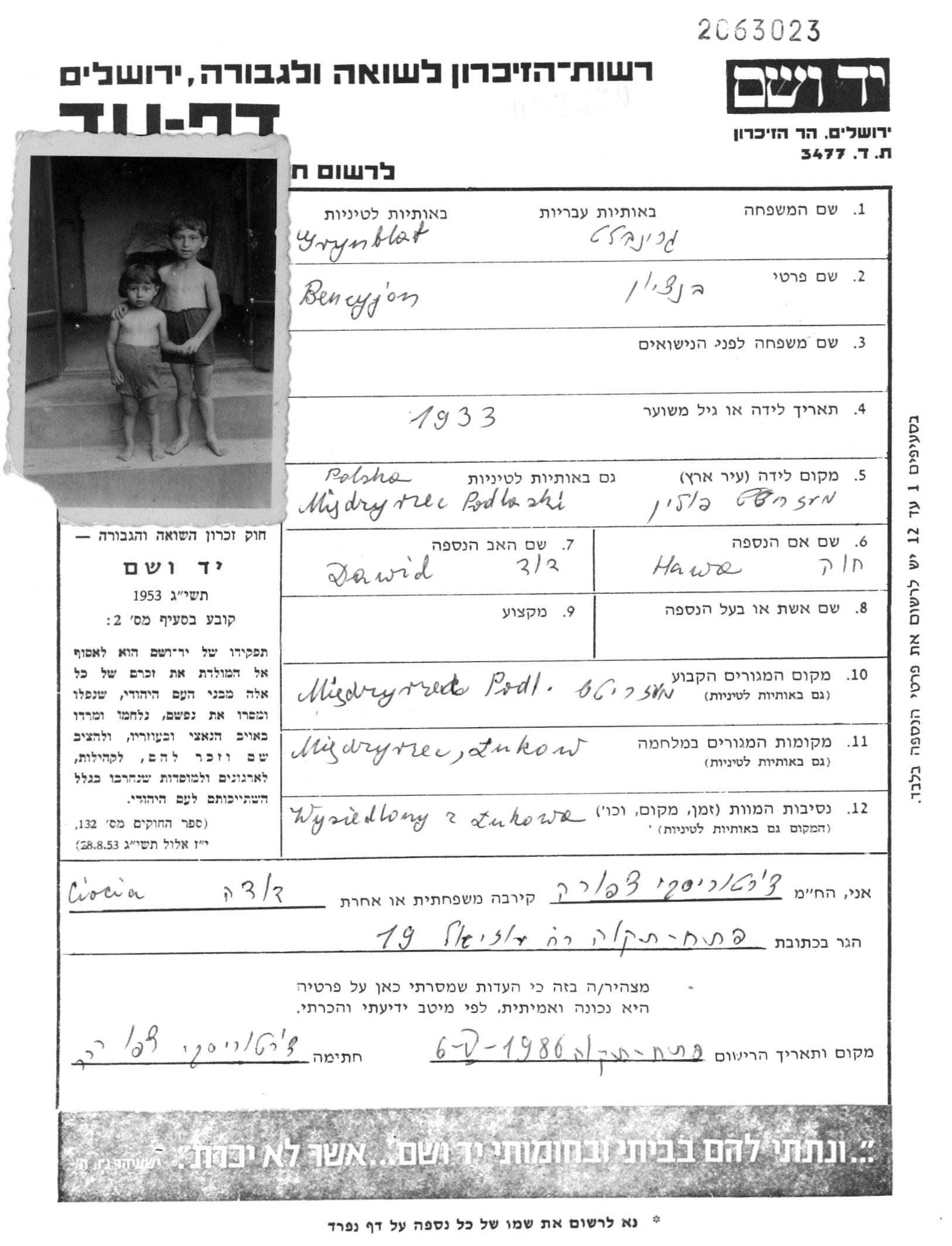 Bencyjon Grynblat wurde im Jahr 1933 in Miedzyrzec, Polen geboren. Vor dem Zweiten Weltkrieg lebte er in Miedzyrzec, Polen.