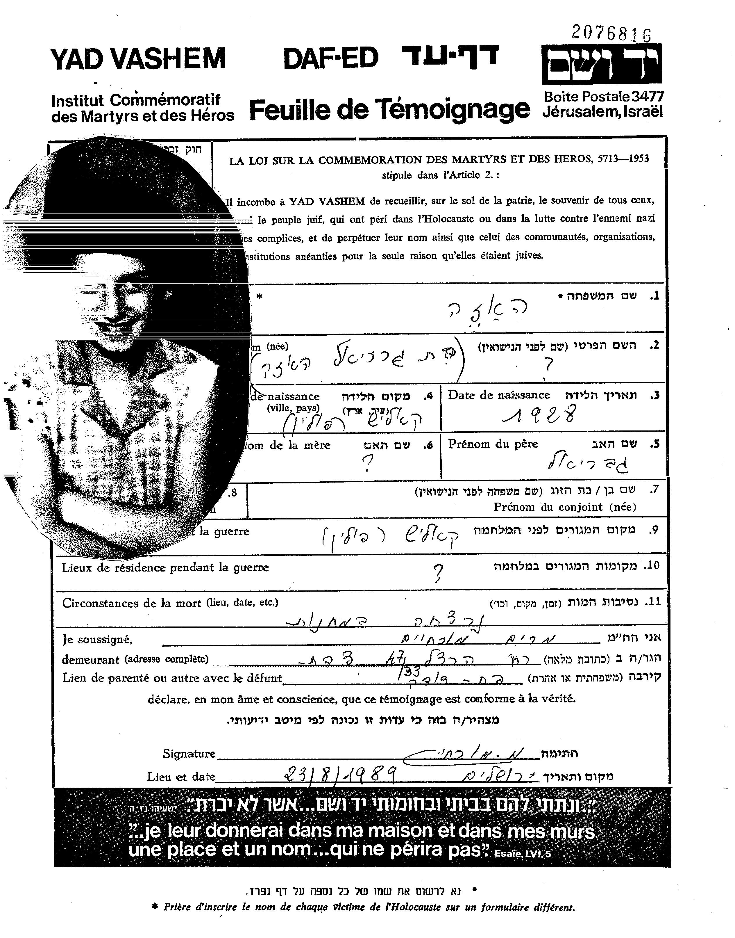 Vorname unbekannt Haze wurde in Kalisz, Polen geboren. Vor dem Zweiten Weltkrieg lebte sie in Kalisz, Polen.