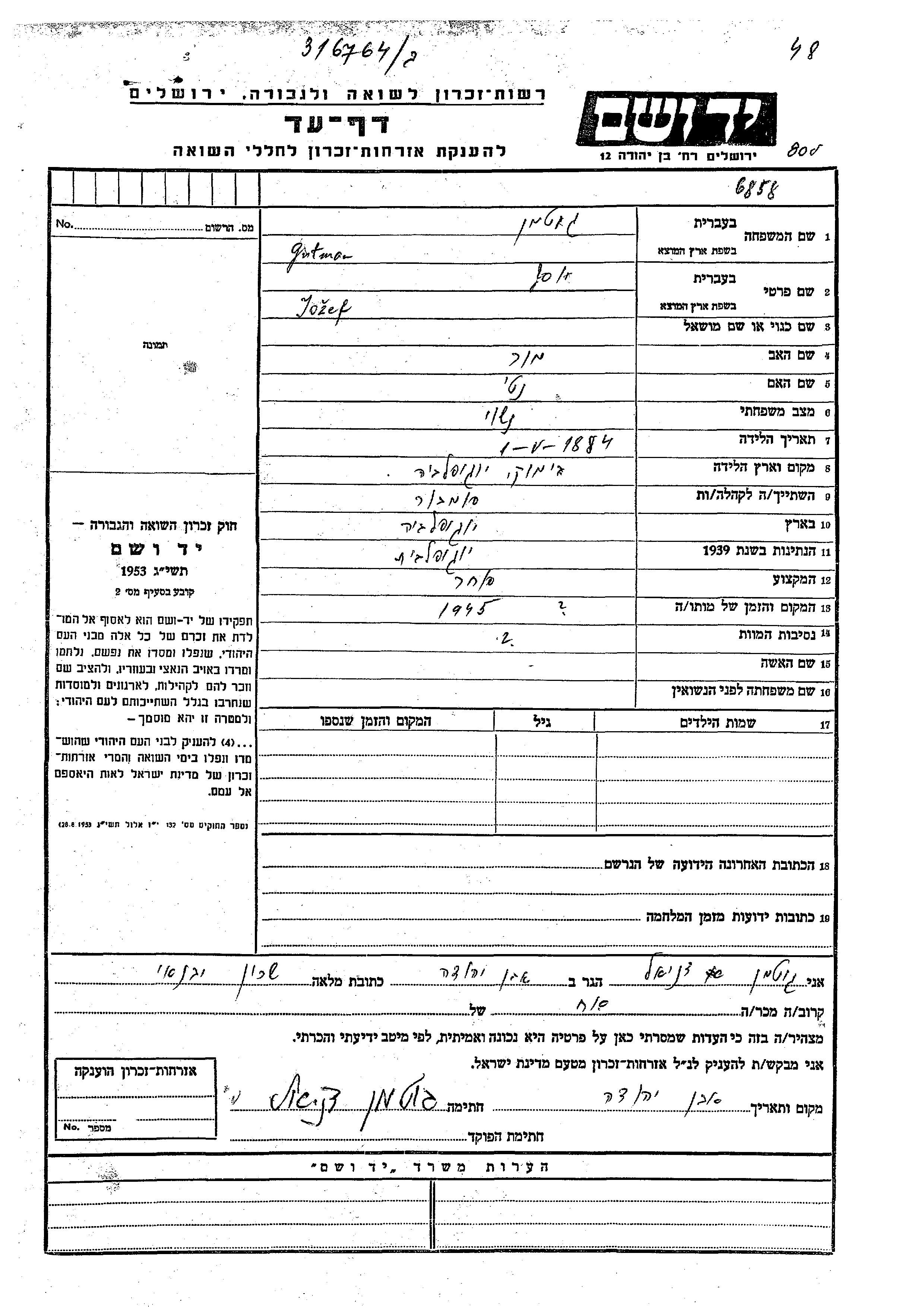 Yozef wurde in der Schoah ermordet. Todesort: unbekannter Ort im Jahr 1945.