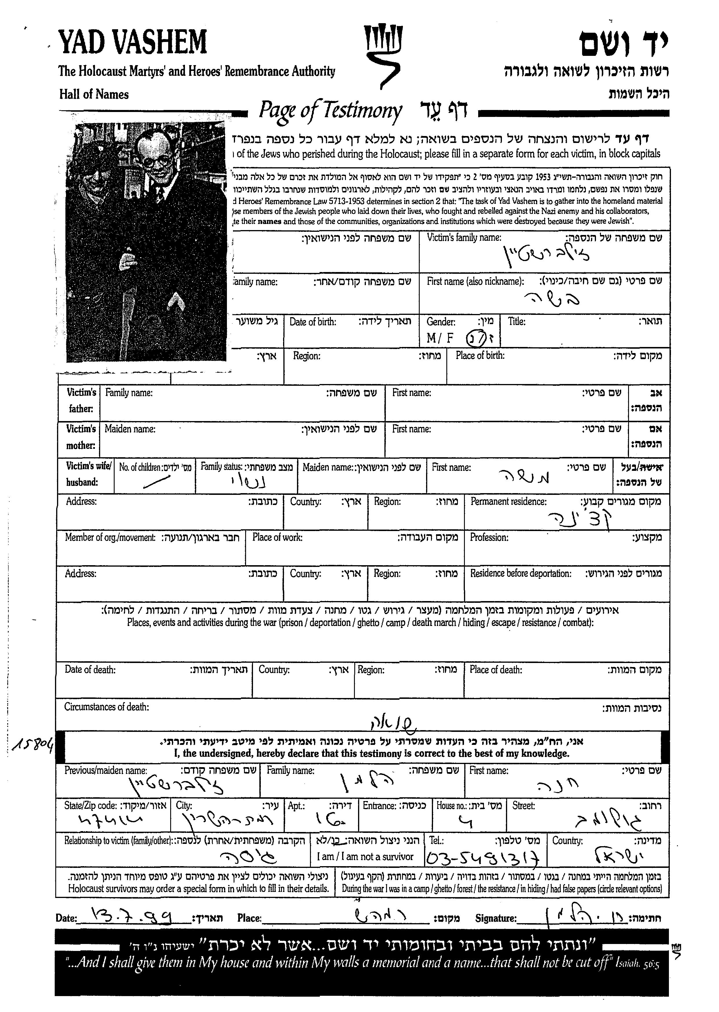 Basha wurde in der Schoah ermordet. Todesort: unbekannter Ort.