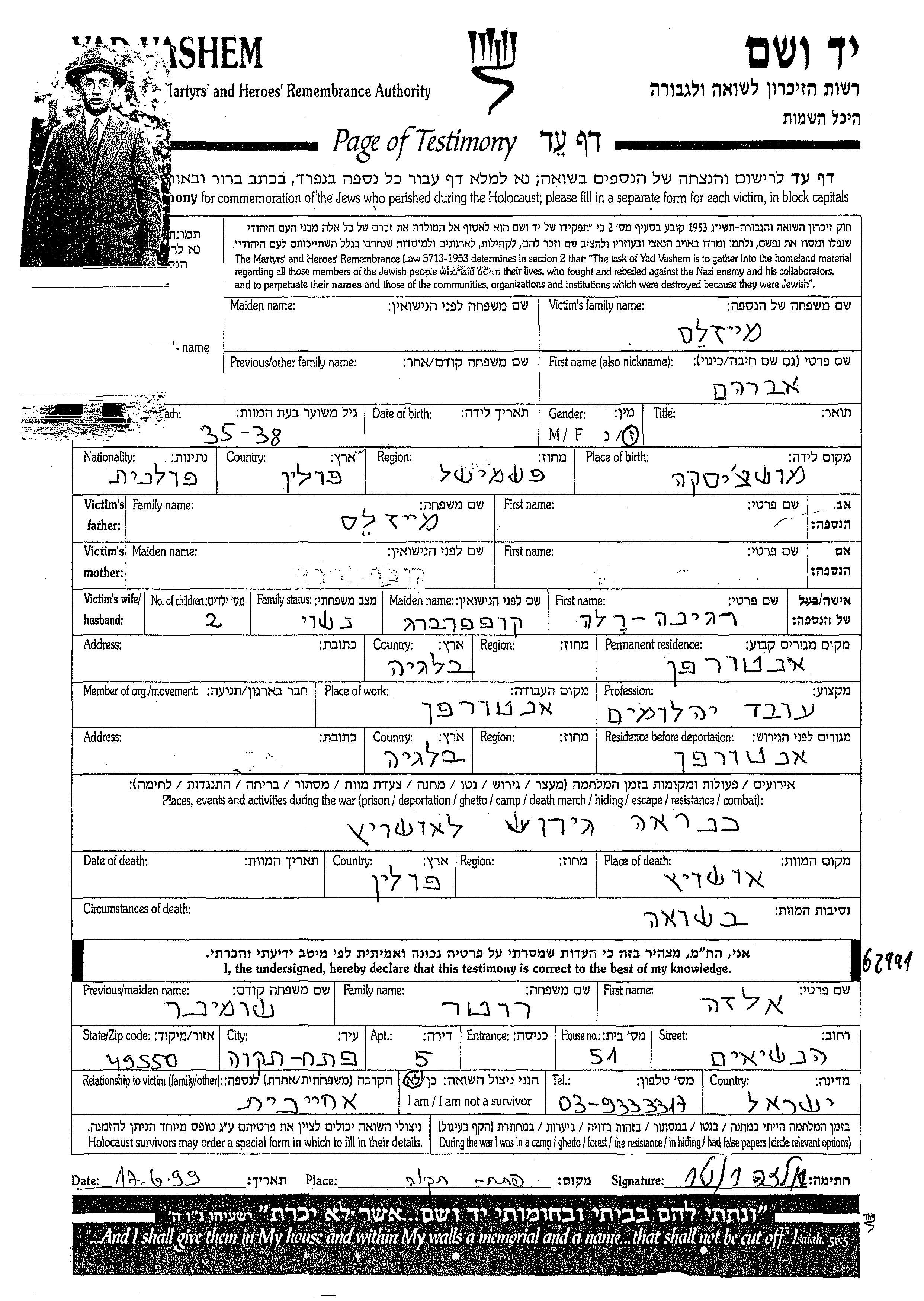 Avraham wurde in der Schoah ermordet. Todesort: Auschwitz, Polen.