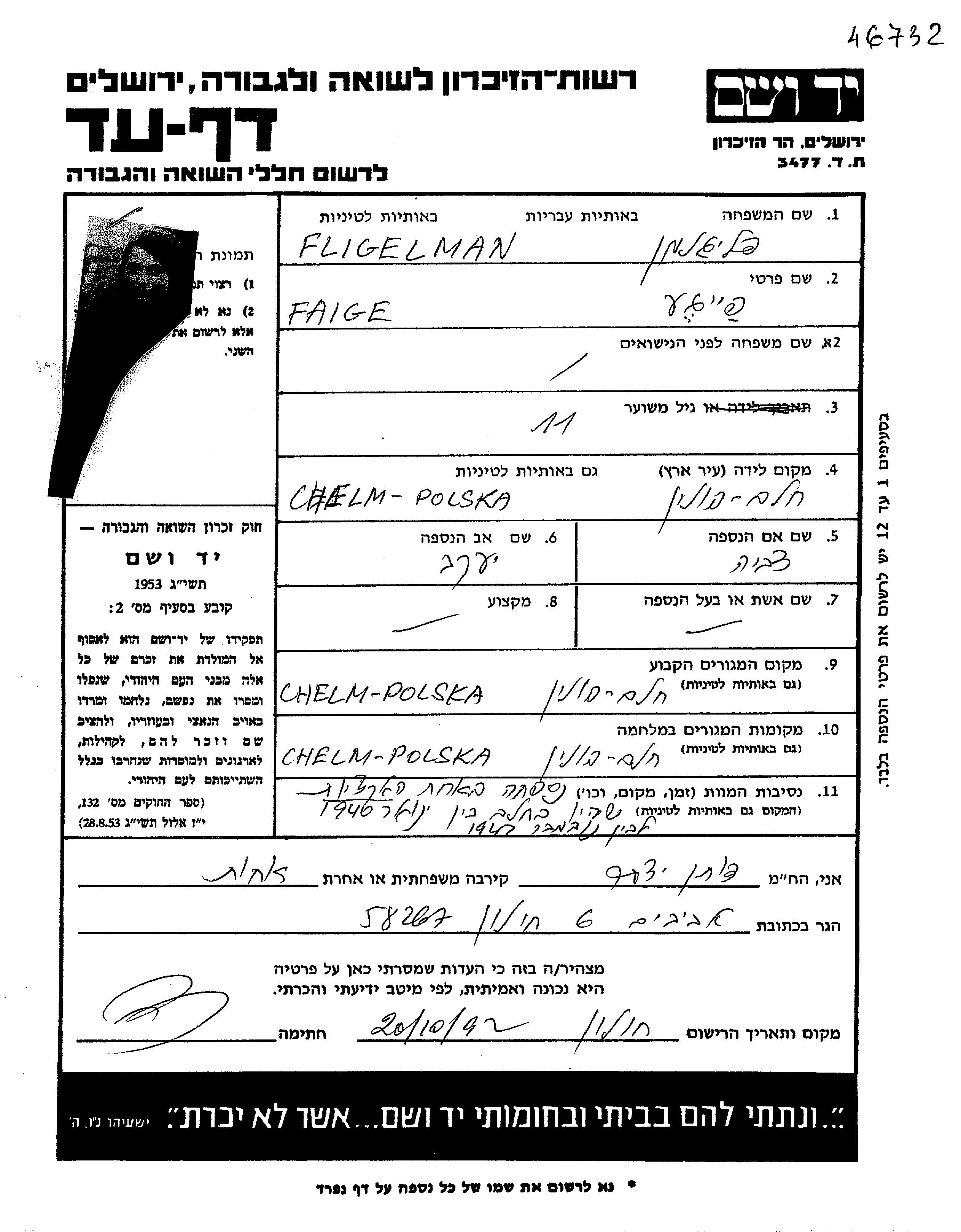 Fligelman Feiga Chelm, Polen Liste ermordeter Juden aus Gedenkbuechern (Yizkor Books)