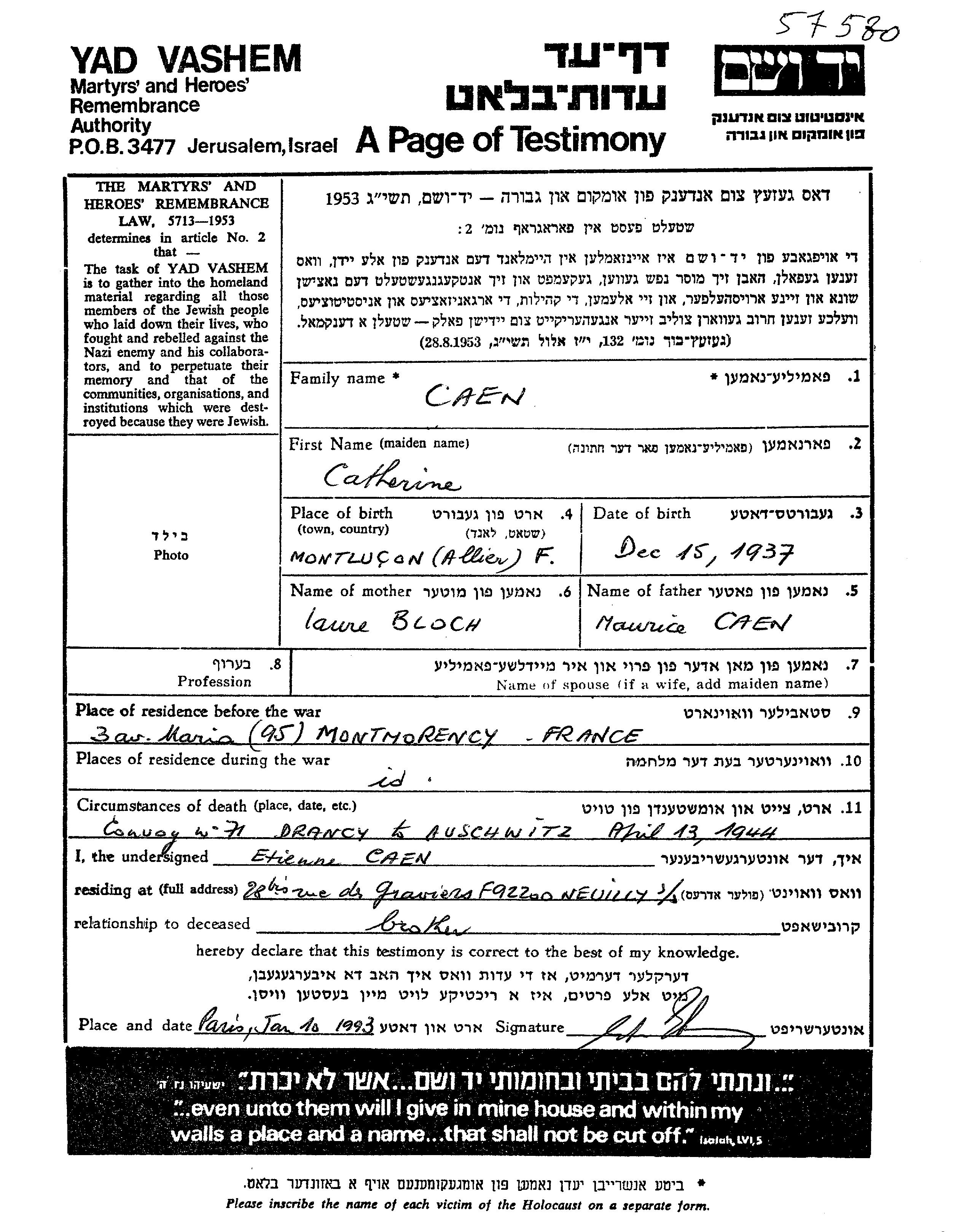 Catherine wurde in der Schoah ermordet. Todesort: Auschwitz, Polen im Jahr 1944.