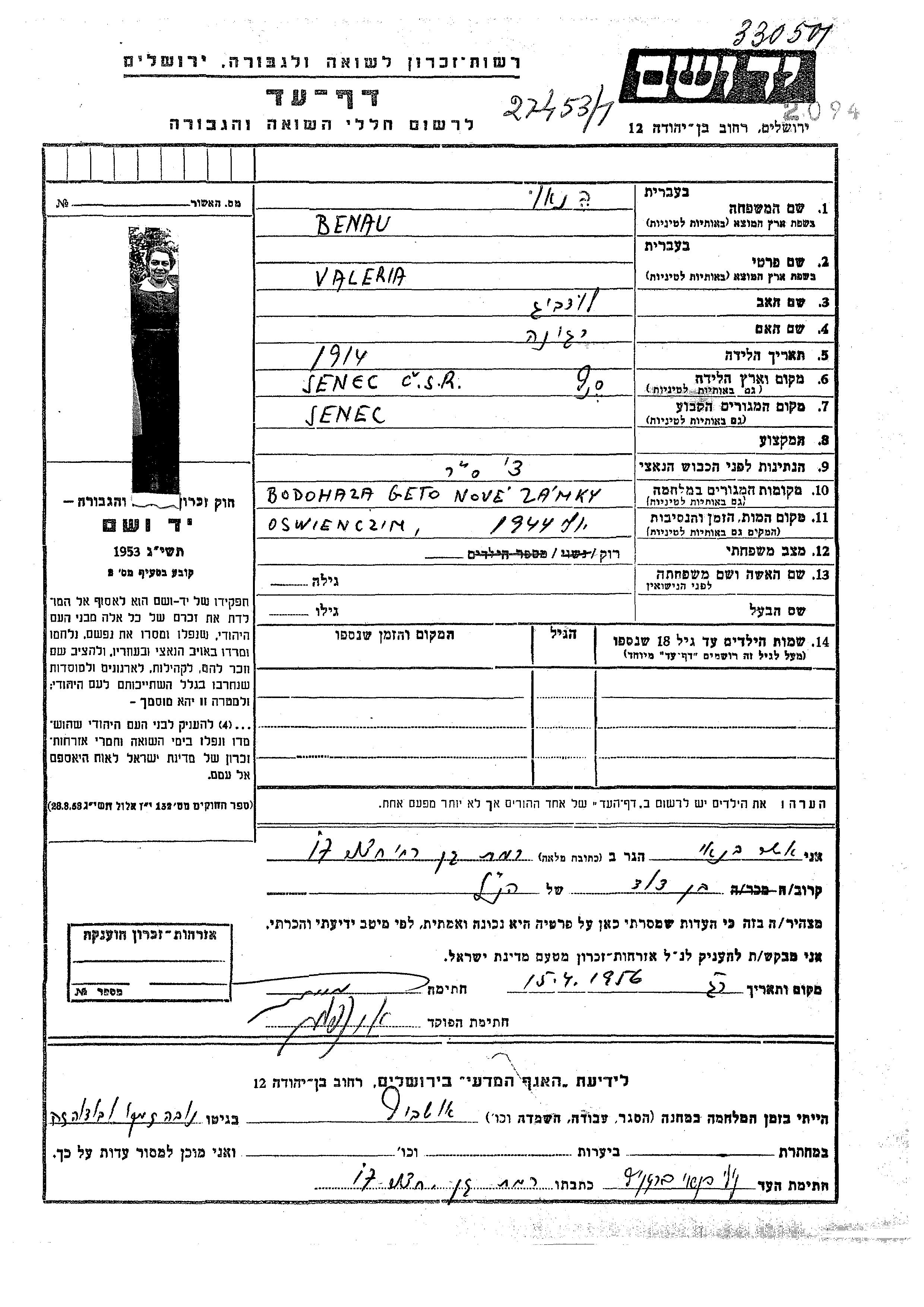 Valeria wurde in der Schoah ermordet. Todesort: Auschwitz, Polen im Jahr 07/1944.