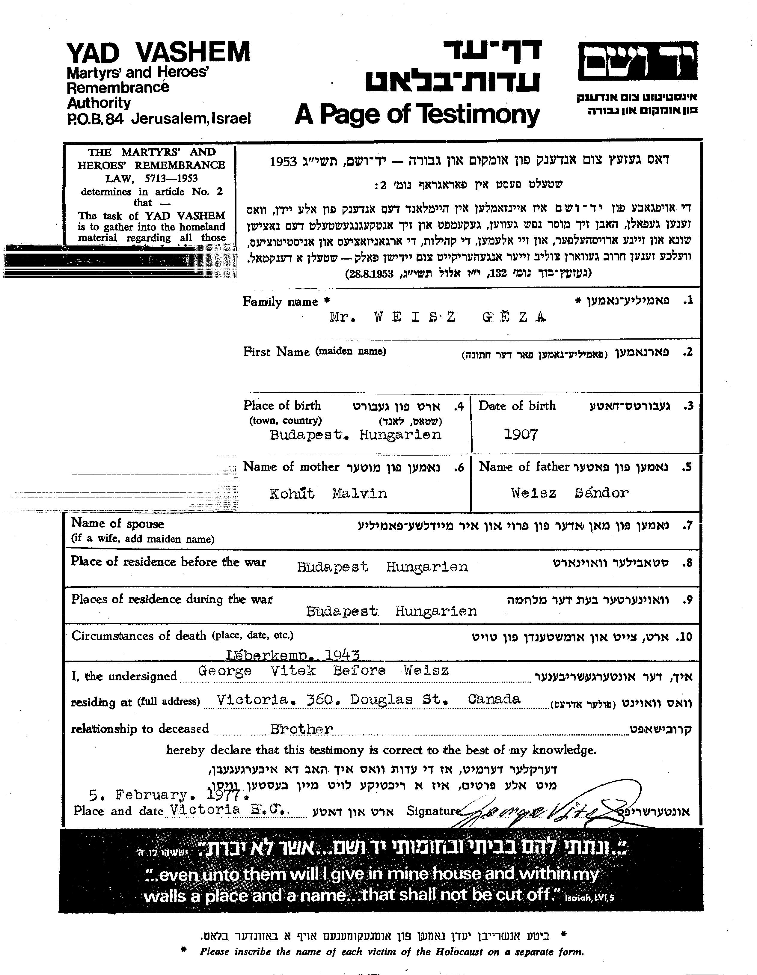 Geza wurde in der Schoah ermordet. Todesort: Lager im Jahr 1943.