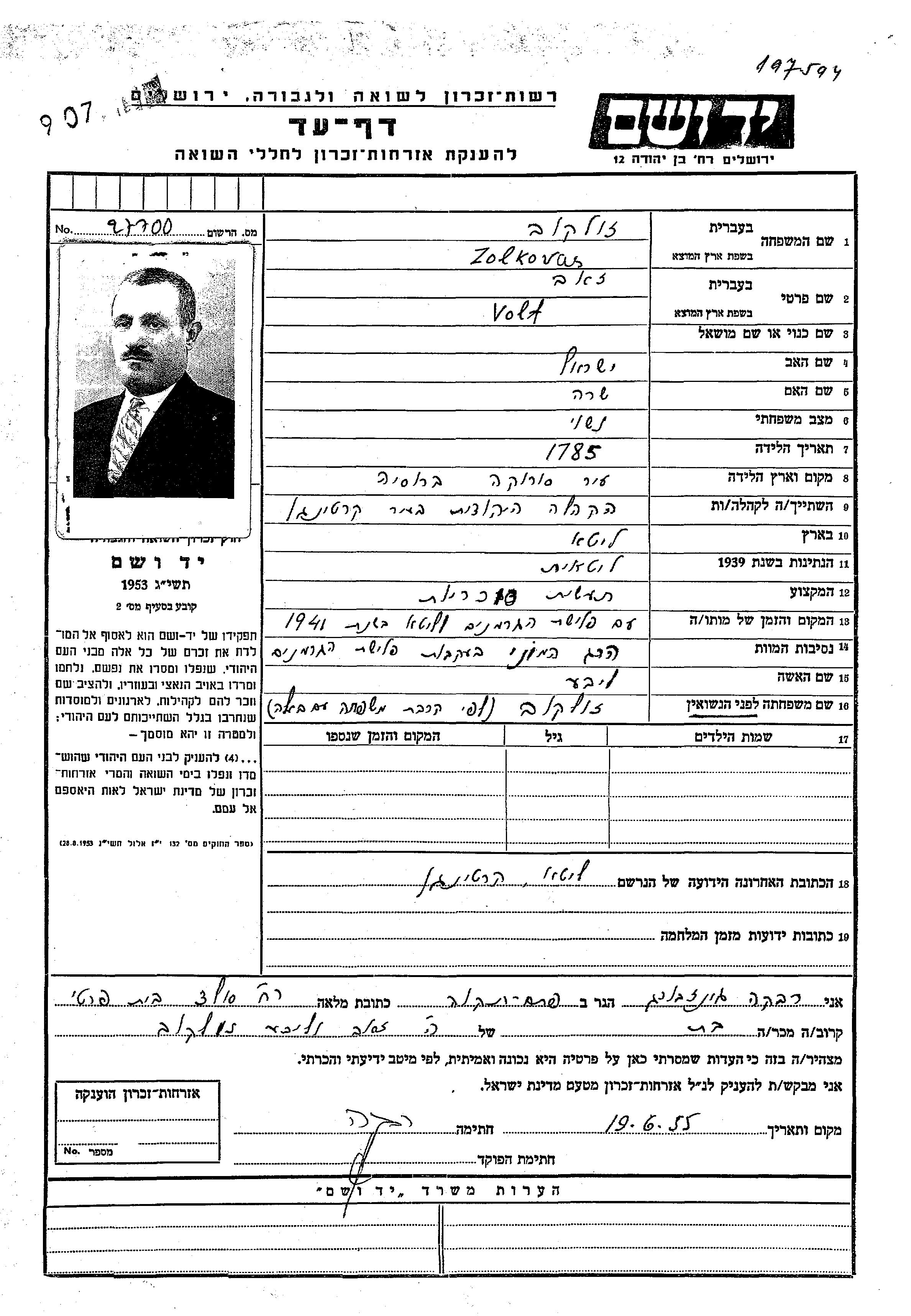 Volf Zeev wurde in der Schoah ermordet. Todesort: Litauen im Jahr 1941.