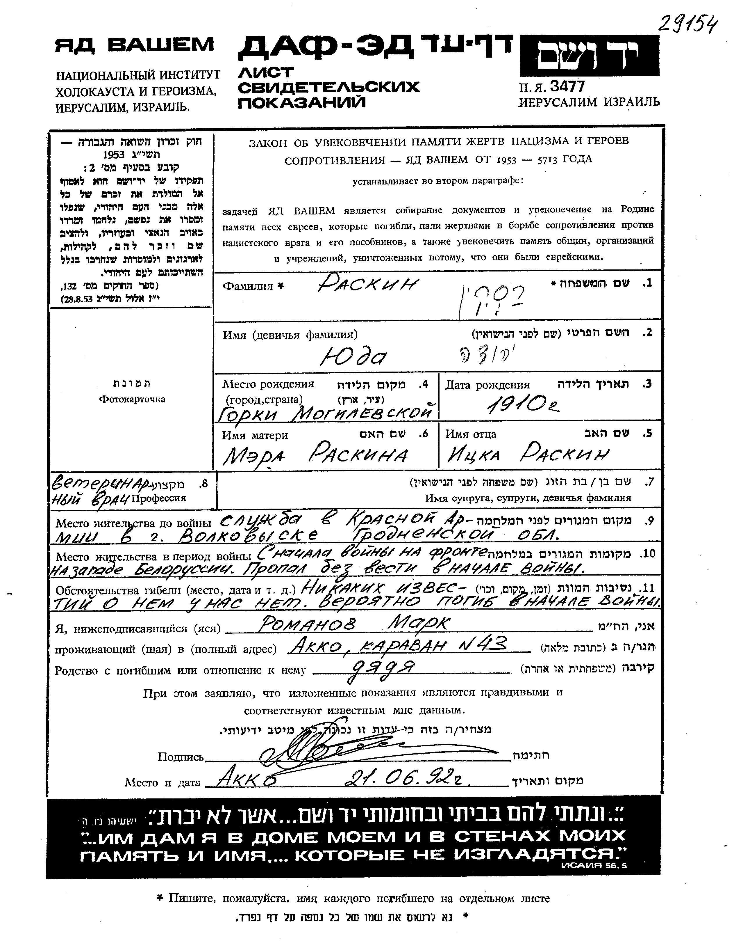 Yuda Raskin wurde im Jahr 1910 in Gorki, Weißrussland (UdSSR) geboren. Er war der Sohn von Itzka Itzka und Mera, geb. Sheinin. Er war Tierarzt. Vor dem Zweiten Weltkrieg lebte er in die Sowjetischen Streitkräfte. Während des Krieges war er in die Sowjetischen Streitkräfte.