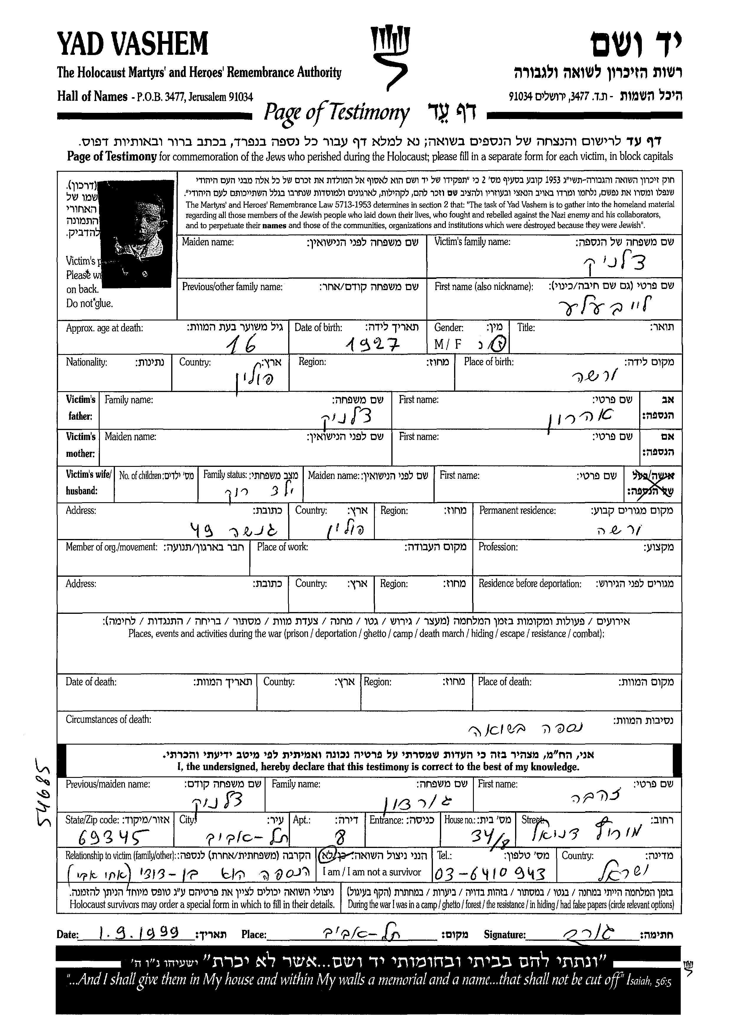 Leibele Tzelnik wurde im Jahr 1927 in Warszawa, Polen geboren. Vor dem Zweiten Weltkrieg lebte er in Warszawa, Polen.
