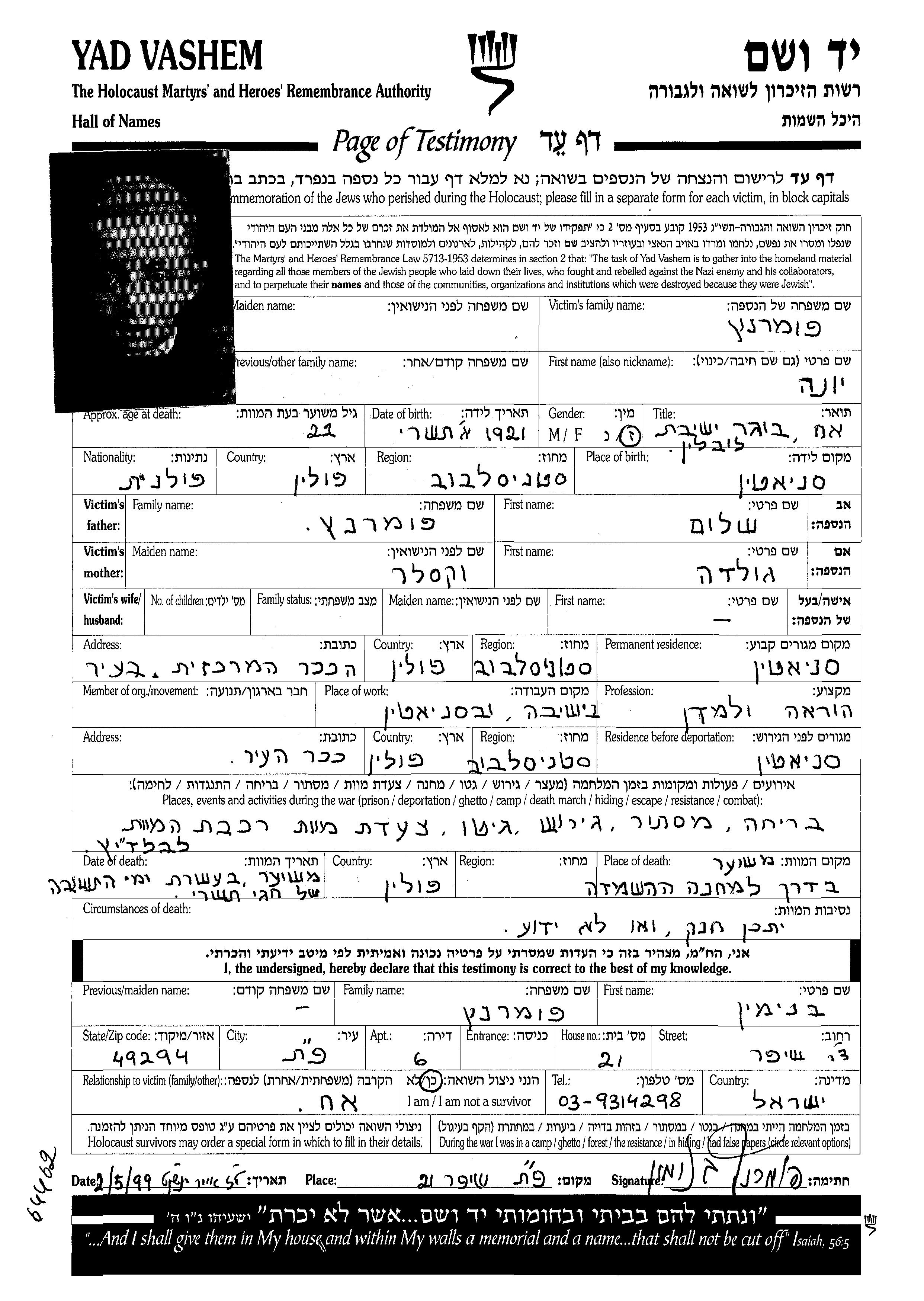 Yona wurde in der Schoah ermordet. Todesort: Polen.