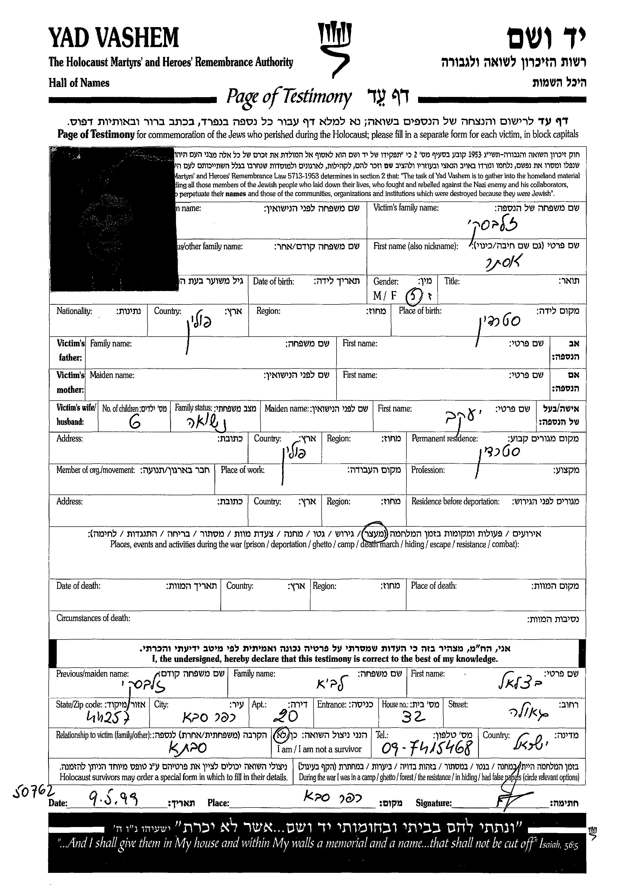 Ester Zalevski wurde in Sterdyn, Polen geboren. Vor dem Zweiten Weltkrieg lebte sie in Sterdyn, Polen.