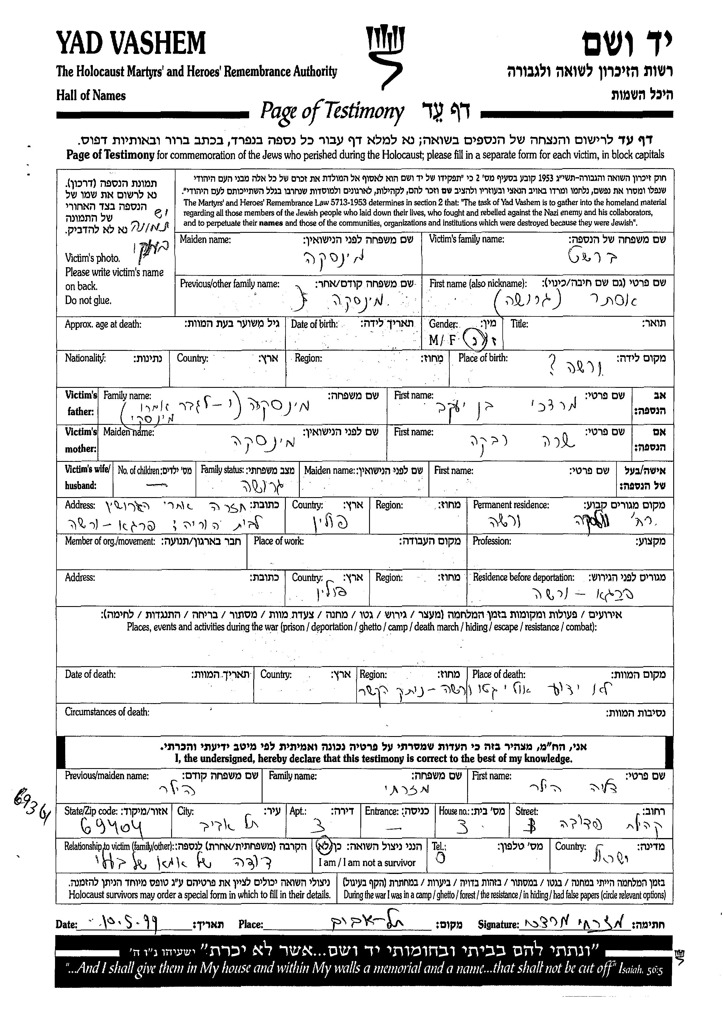 Ester Barsht, geb. Minski wurde in Warszawa, Polen geboren. Vor dem Zweiten Weltkrieg lebte sie in Warszawa, Polen.