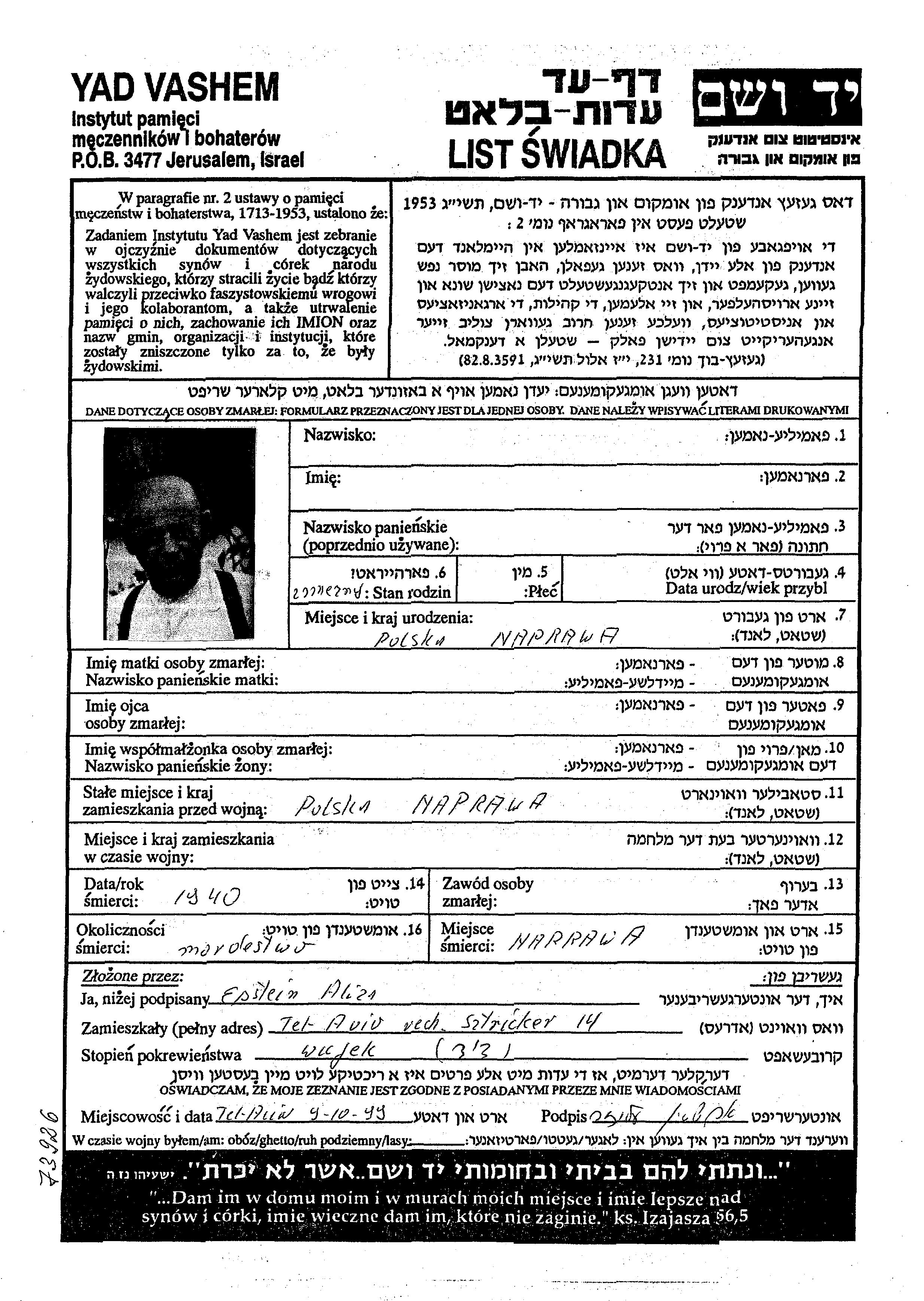 Name unbekannt Vorname unbekannt Naprawa, Polen Gedenkblatt