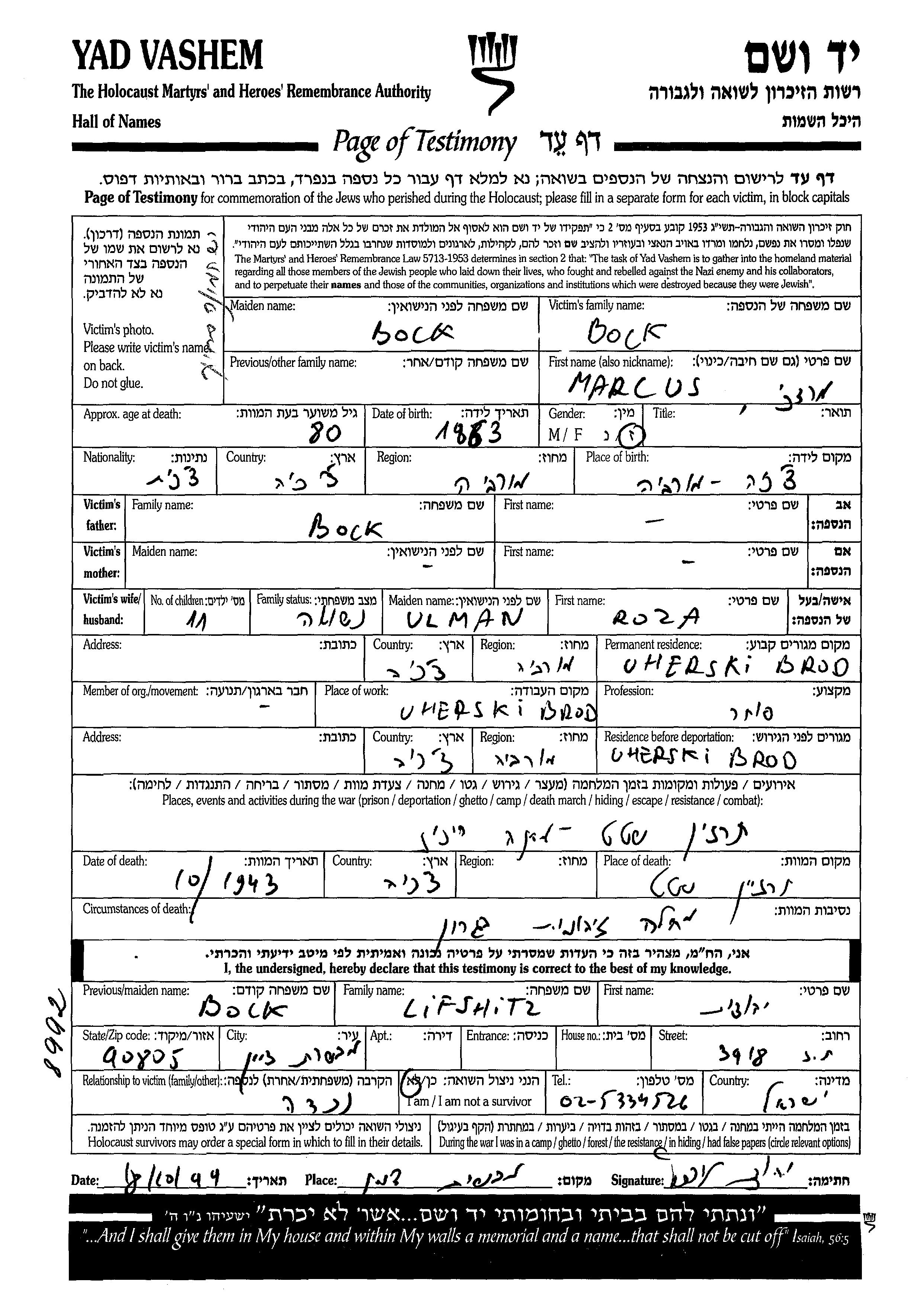 Bock | Marcus Mordekhai | 1863 | Uhersky Brod, Tschechoslowakei | Photos |