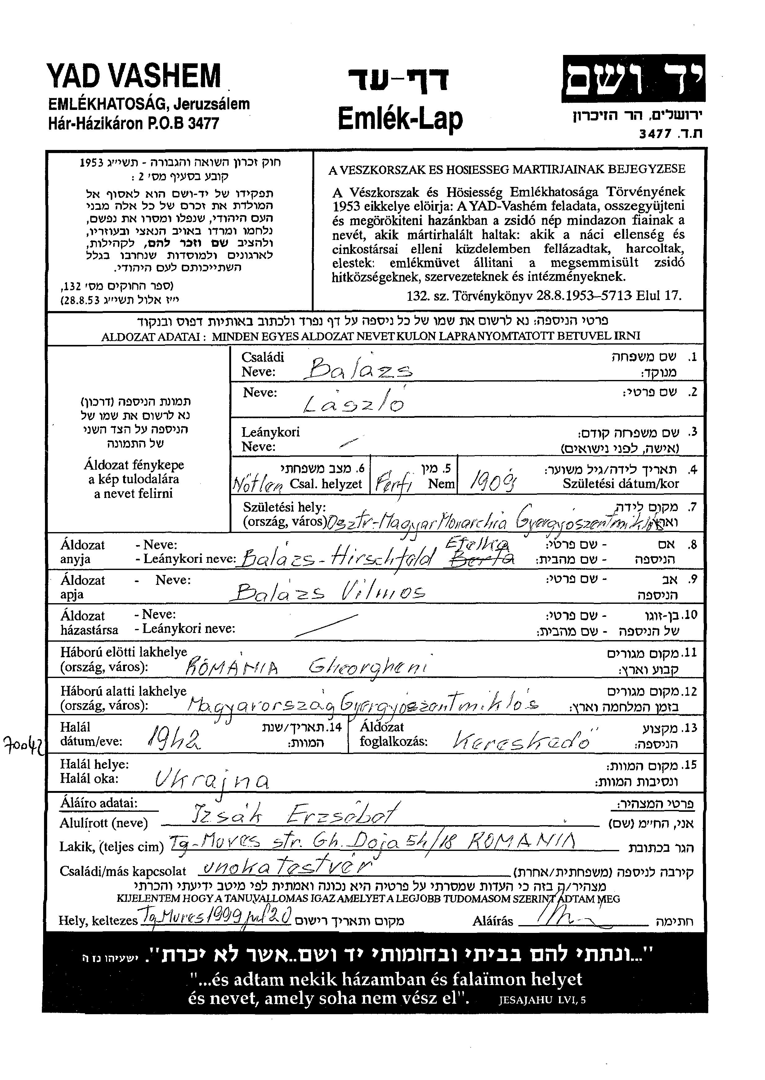 Suche nach einem Todesjahr im Zeitraum der Holocaust: 1933 bis 1945. Bitte wählen Sie 'Exakt' im Auswahlmenü, um nur nach einem einzelnen Jahr zu suchen, alternativ können Sie die flexibleren Optionen '+/- 2 Jahre' oder '+/- 5 Jahre' wählen.