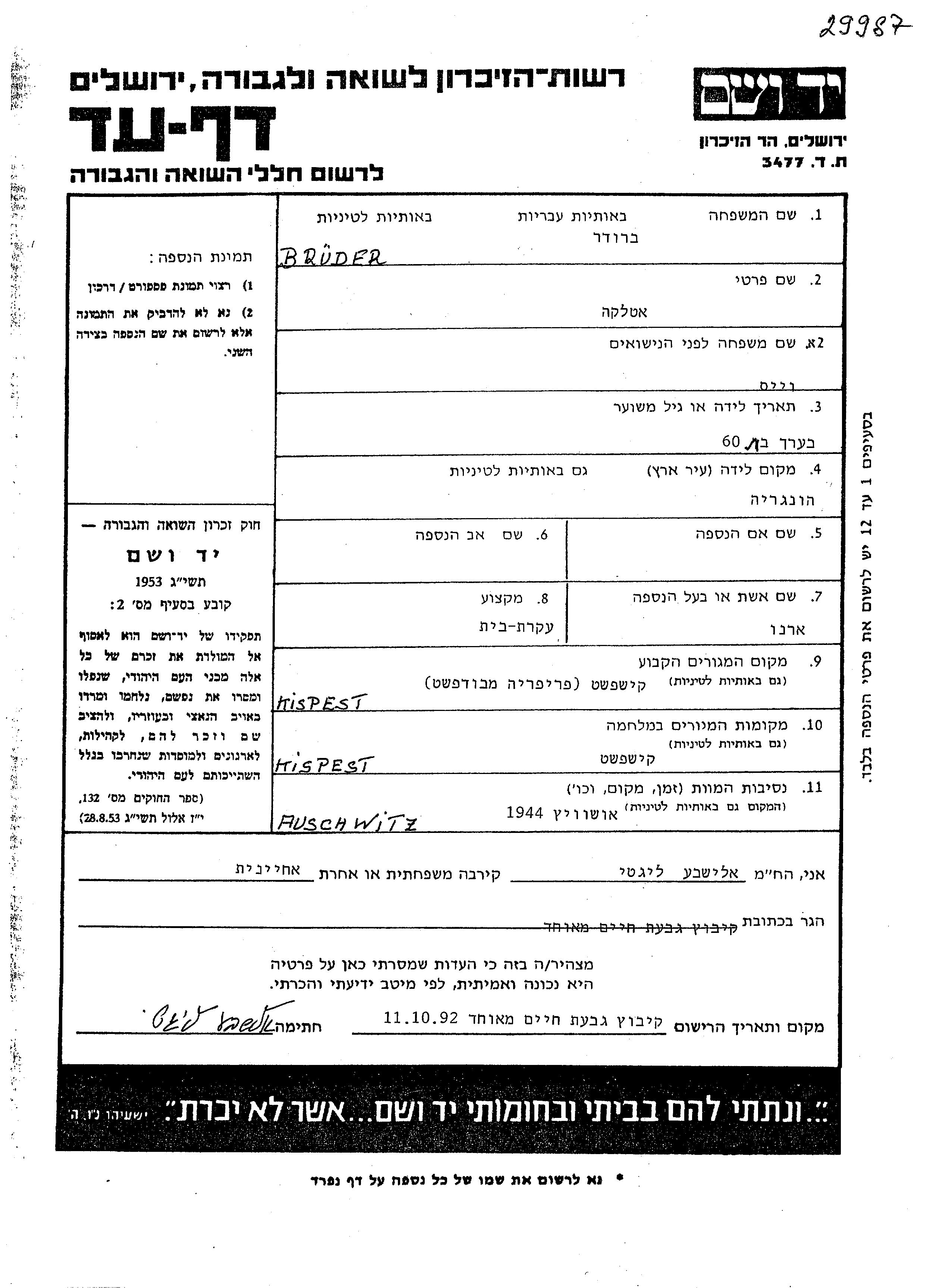 Etelka Brüder Broder Brider, geb. Weiss wurde im Jahr 1884 in Ungarn geboren. Sie war Hausfrau und mit Erno Verheiratet. Vor dem Zweiten Weltkrieg lebte sie in Kispest, Ungarn. Während des Krieges war sie in Kispest, Ungarn.