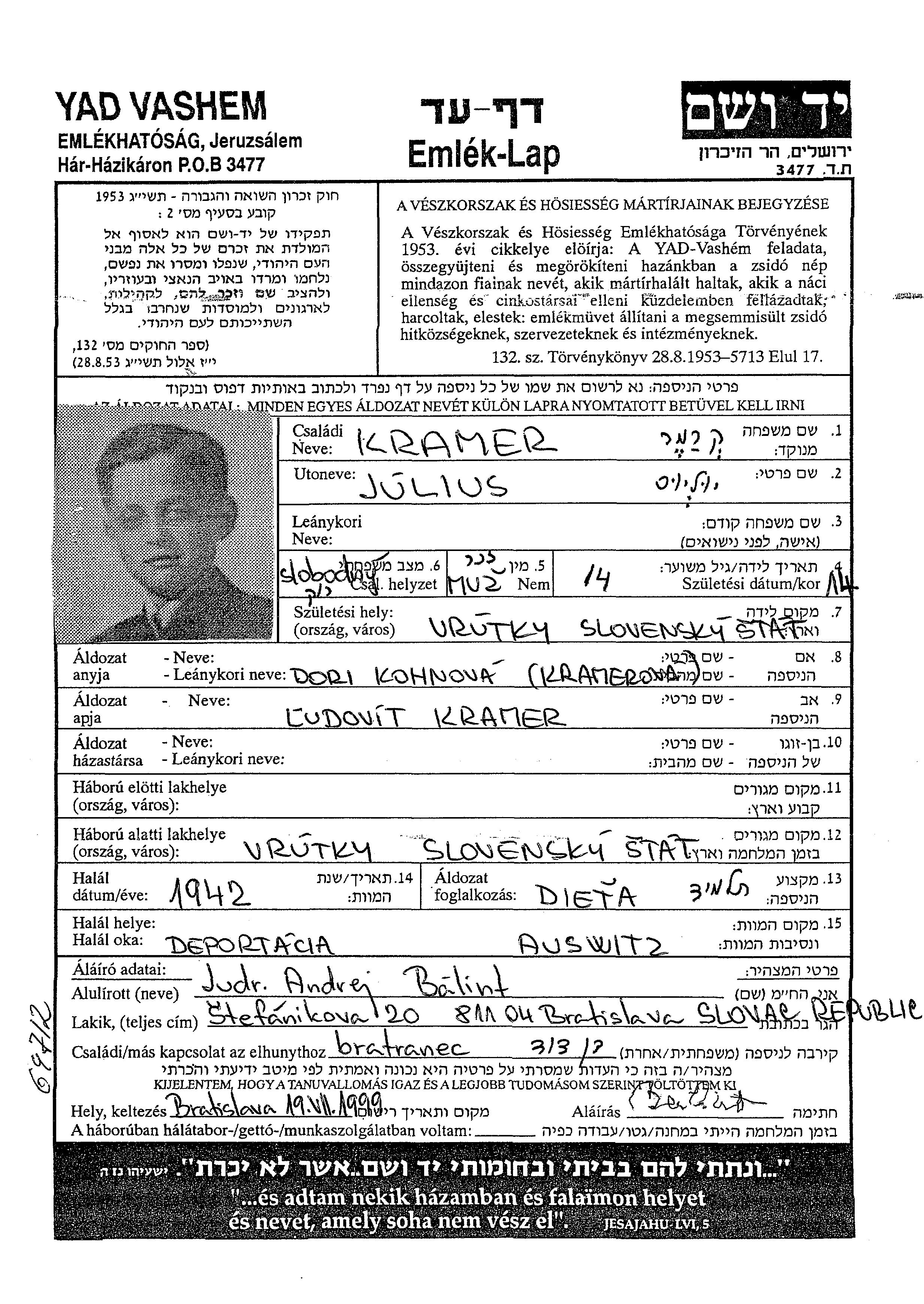 Julius Kramer wurde in Vrutky, Tschechoslowakei geboren. Er war Schüler/-in.