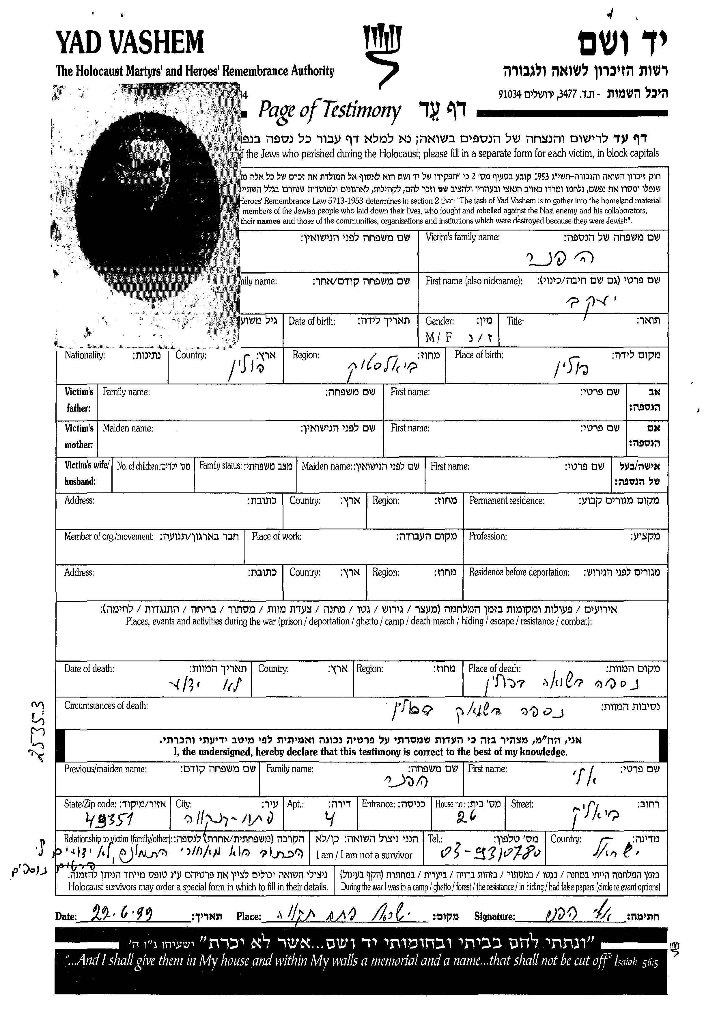 Suche nach einem Todesjahr im Zeitraum der Holocaust: 1933 bis 1945. Bitte wählen Sie 'Exakt' im Auswahlmenü, um nur nach einem einzelnen Jahr zu suchen, alternativ können Sie die flexibleren Optionen '+/- 2 Jahre' oder '+/- 5 Jahre' wählen.