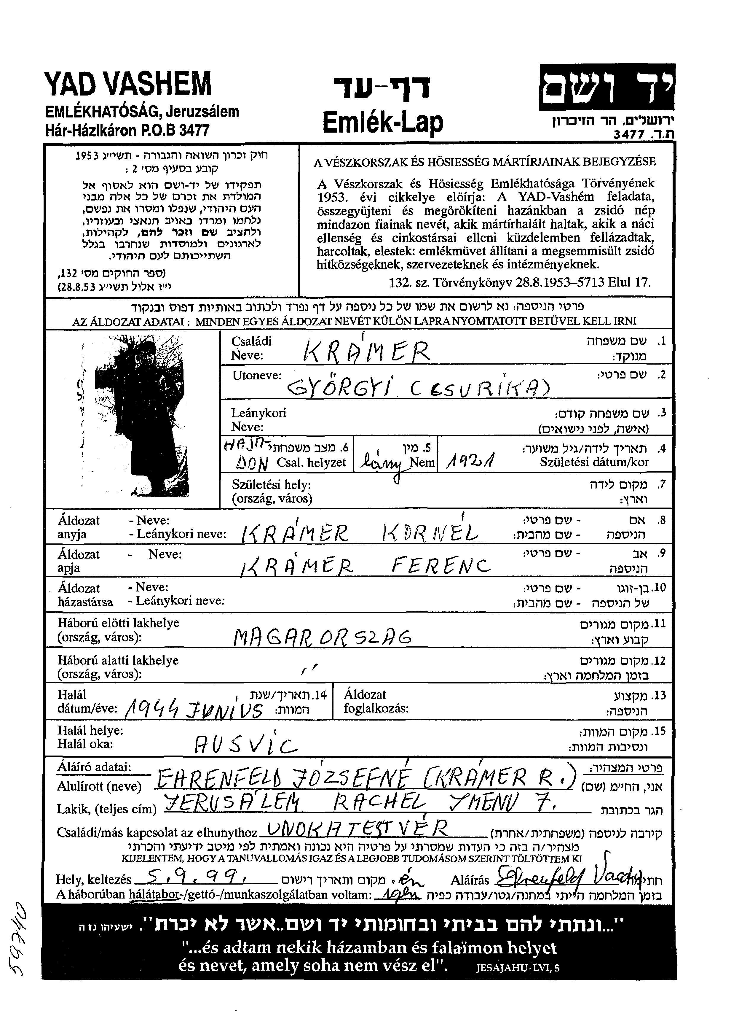 Gyorgyi Surika Kremer wurde im Jahr 1921 geboren. Vor dem Zweiten Weltkrieg lebte er in Ungarn.