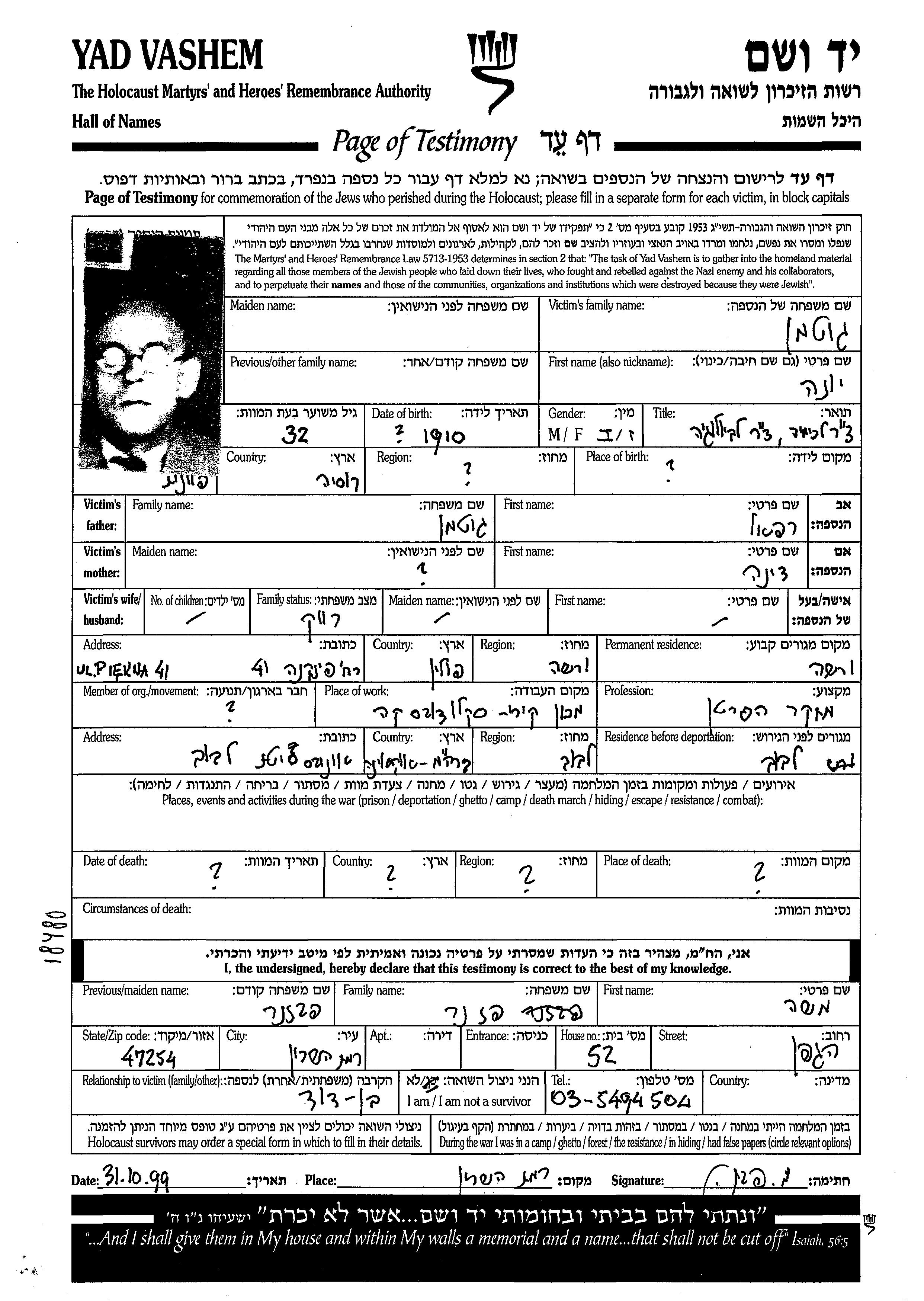 Yona wurde in der Schoah ermordet. Todesort: unbekannter Ort.