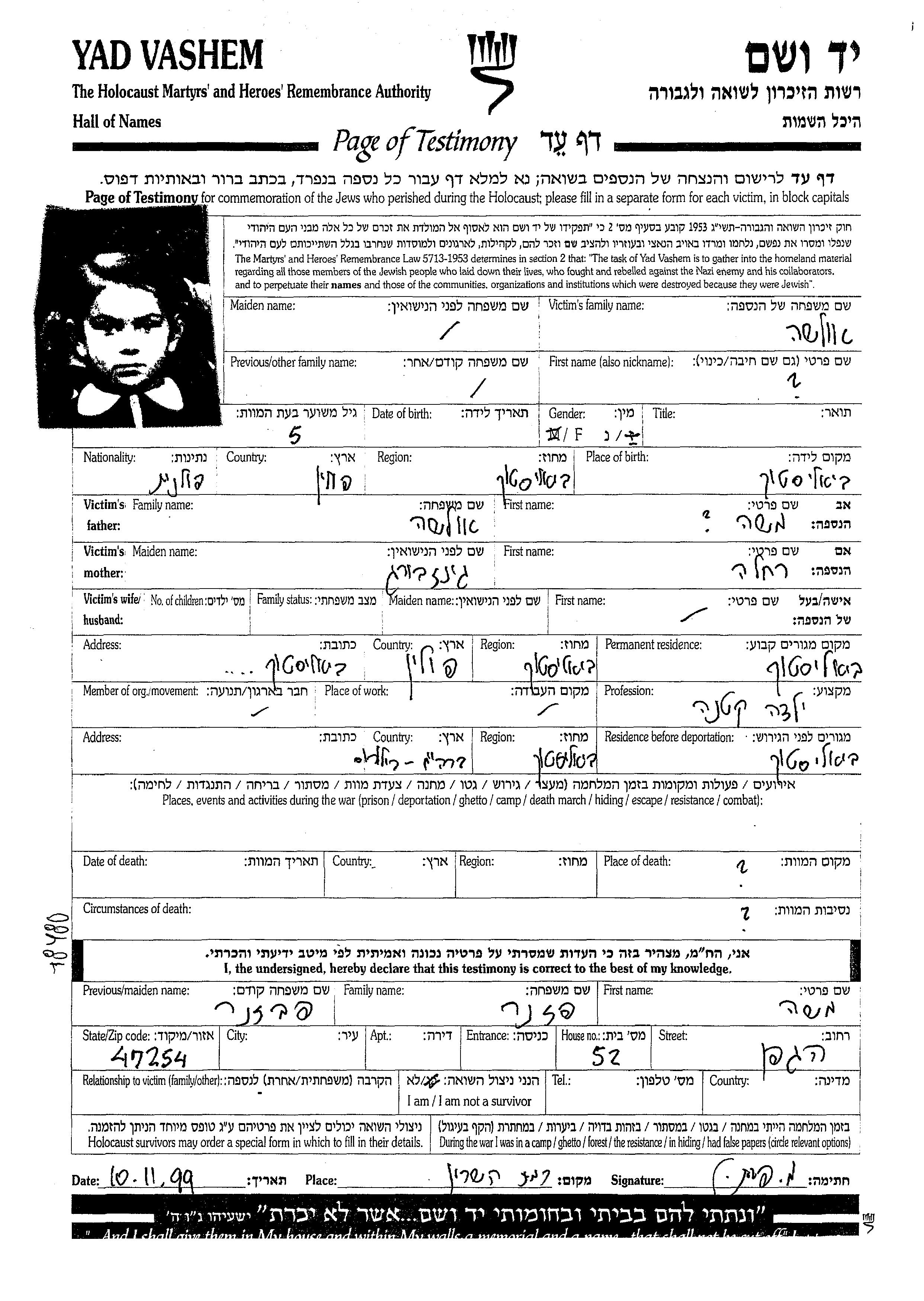 Vorname unbekannt Olsha wurde in Bialystok, Polen geboren. Vor dem Zweiten Weltkrieg lebte sie in Bialystok, Polen.