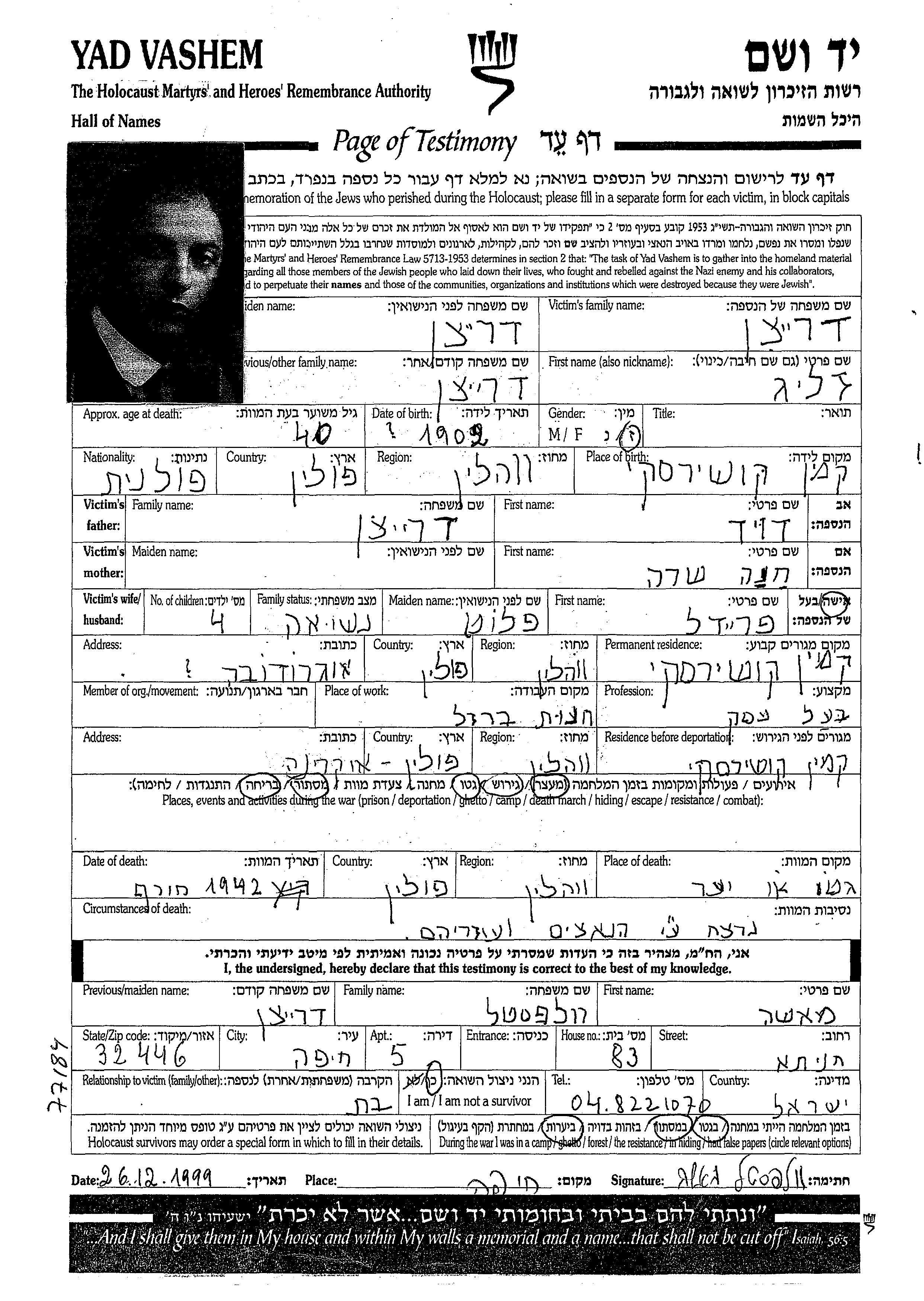 Dreitzen | Zelig | 1902 | Kamen Kashirski, Polen | Gedenkblatt |