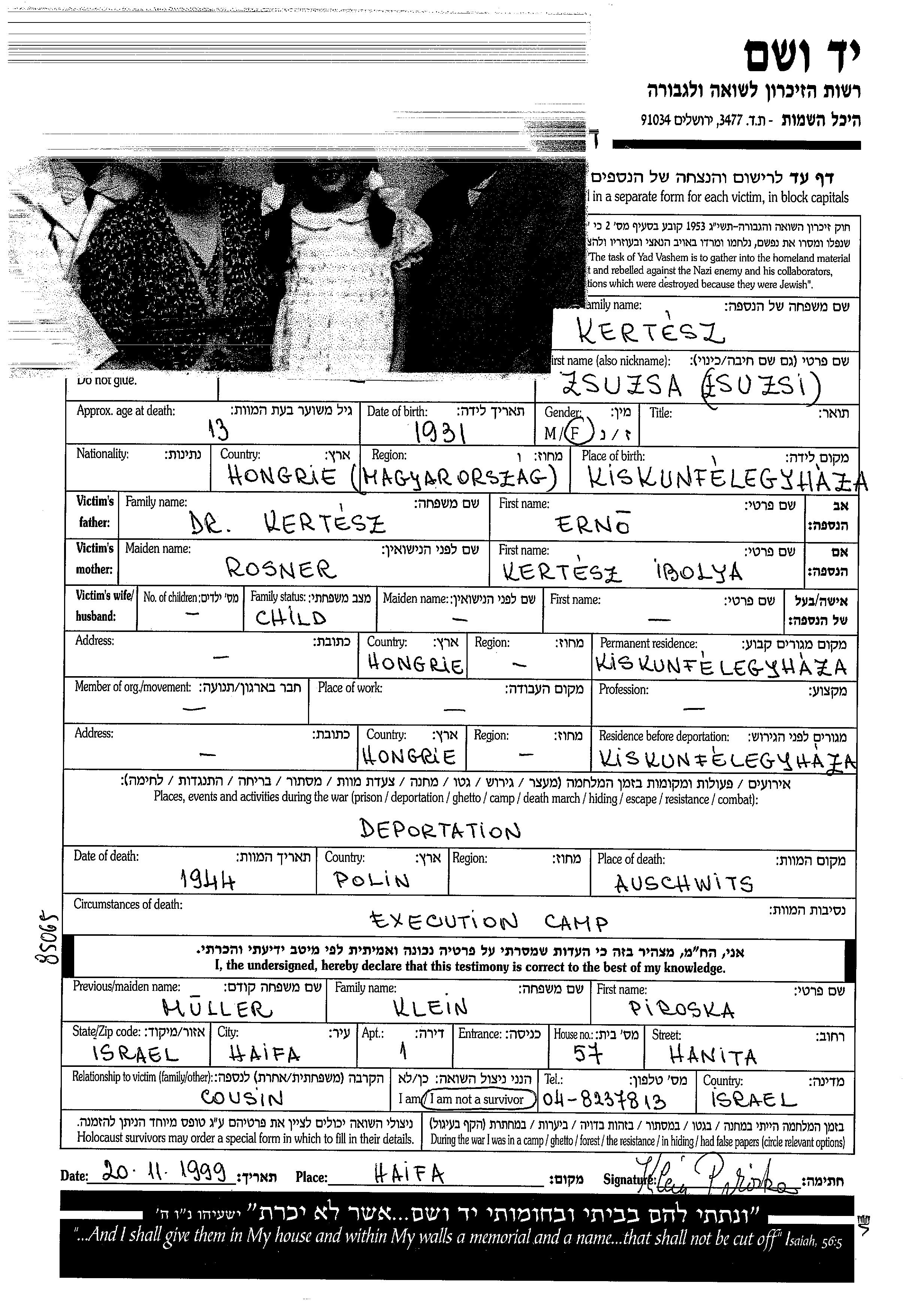 Zsuzsa wurde in der Schoah ermordet. Todesort: Auschwitz, Polen im Jahr 1944.