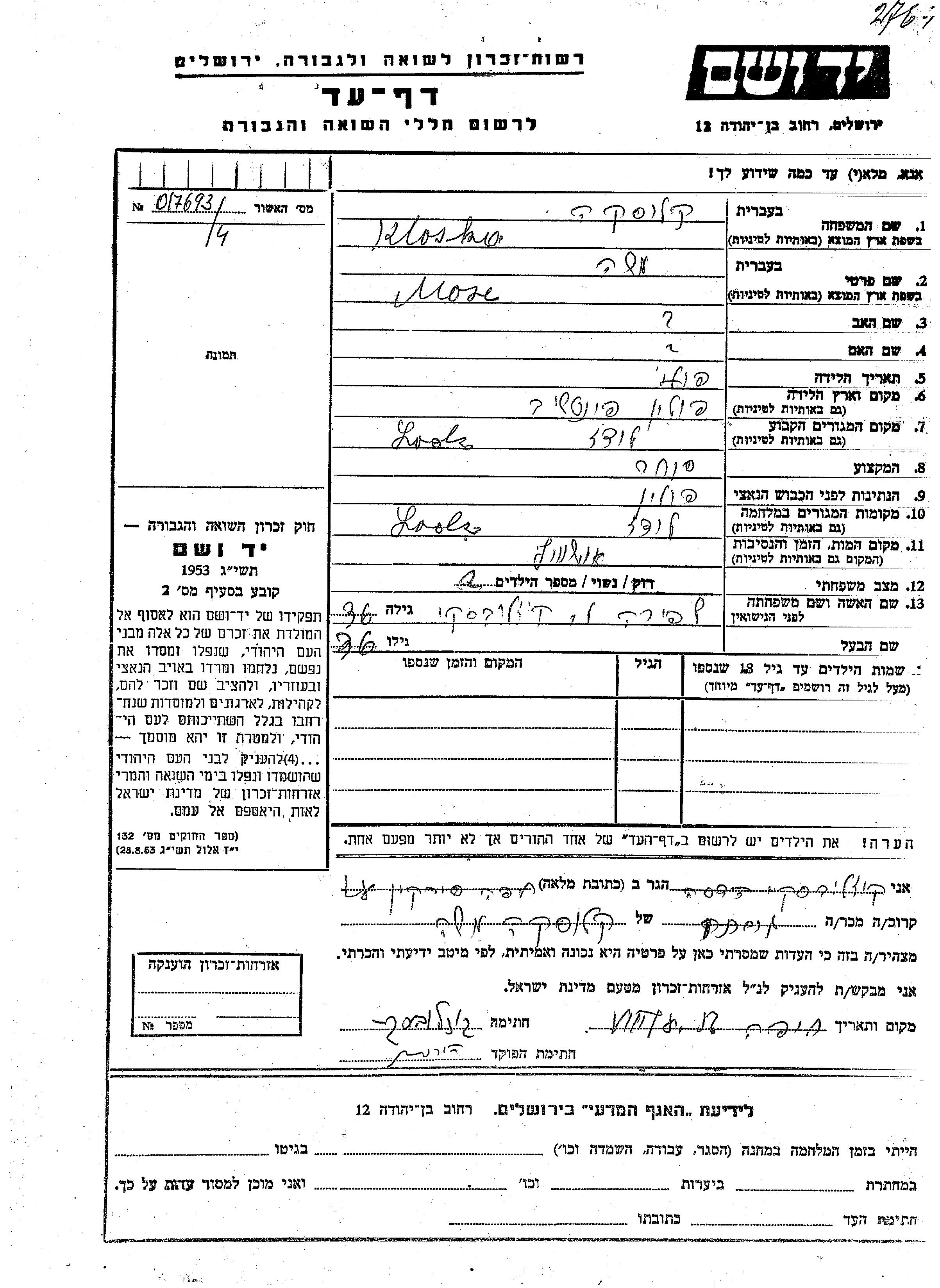 Mose wurde in der Schoah ermordet. Todesort: Auschwitz, Polen.