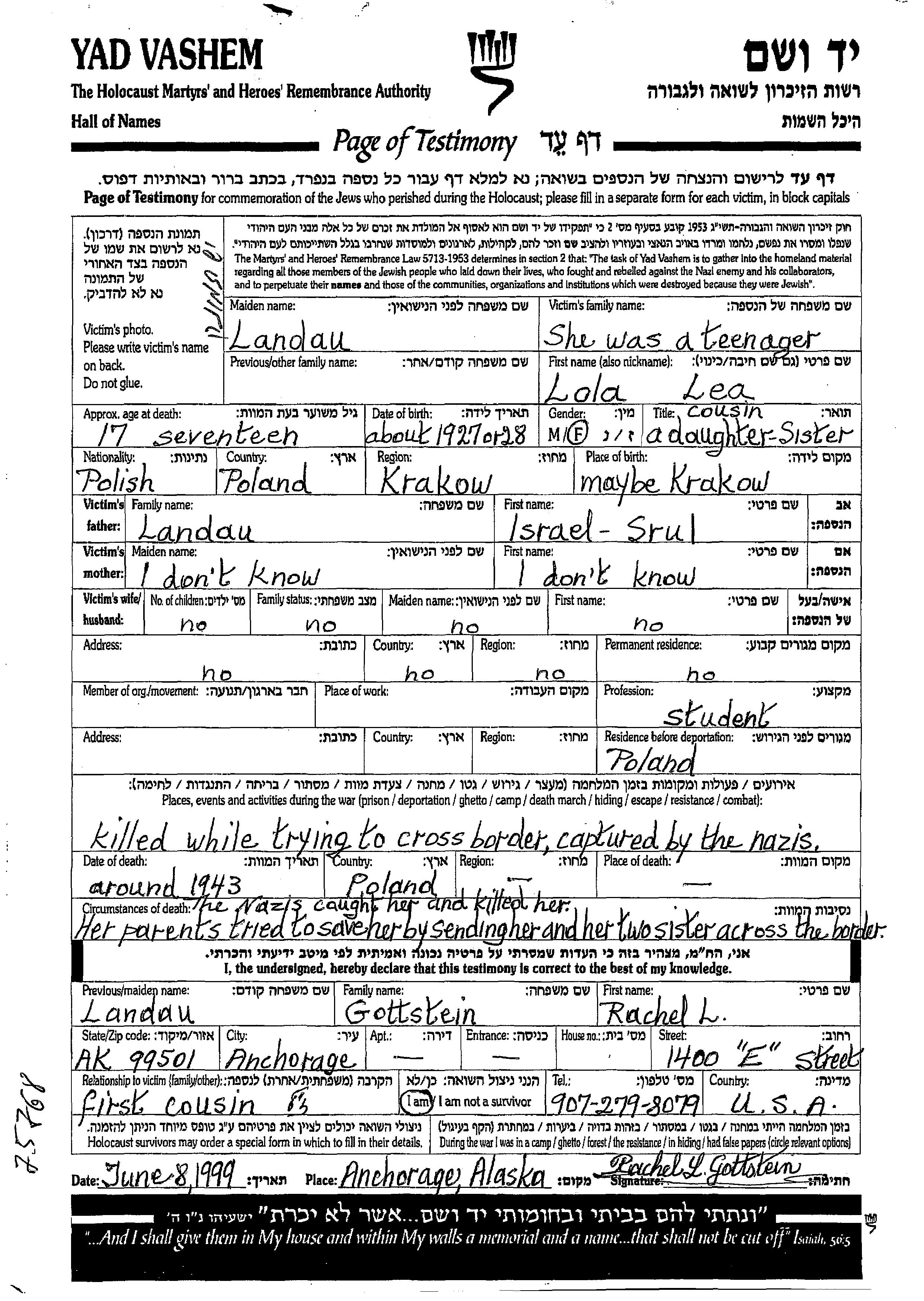 Suche nach einem Todesjahr im Zeitraum der Holocaust: 1933 bis 1945. Bitte wählen Sie 'Exakt' im Auswahlmenü, um nur nach einem einzelnen Jahr zu suchen, alternativ können Sie die flexibleren Optionen '+/- 2 Jahre' oder '+/- 5 Jahre' wählen.