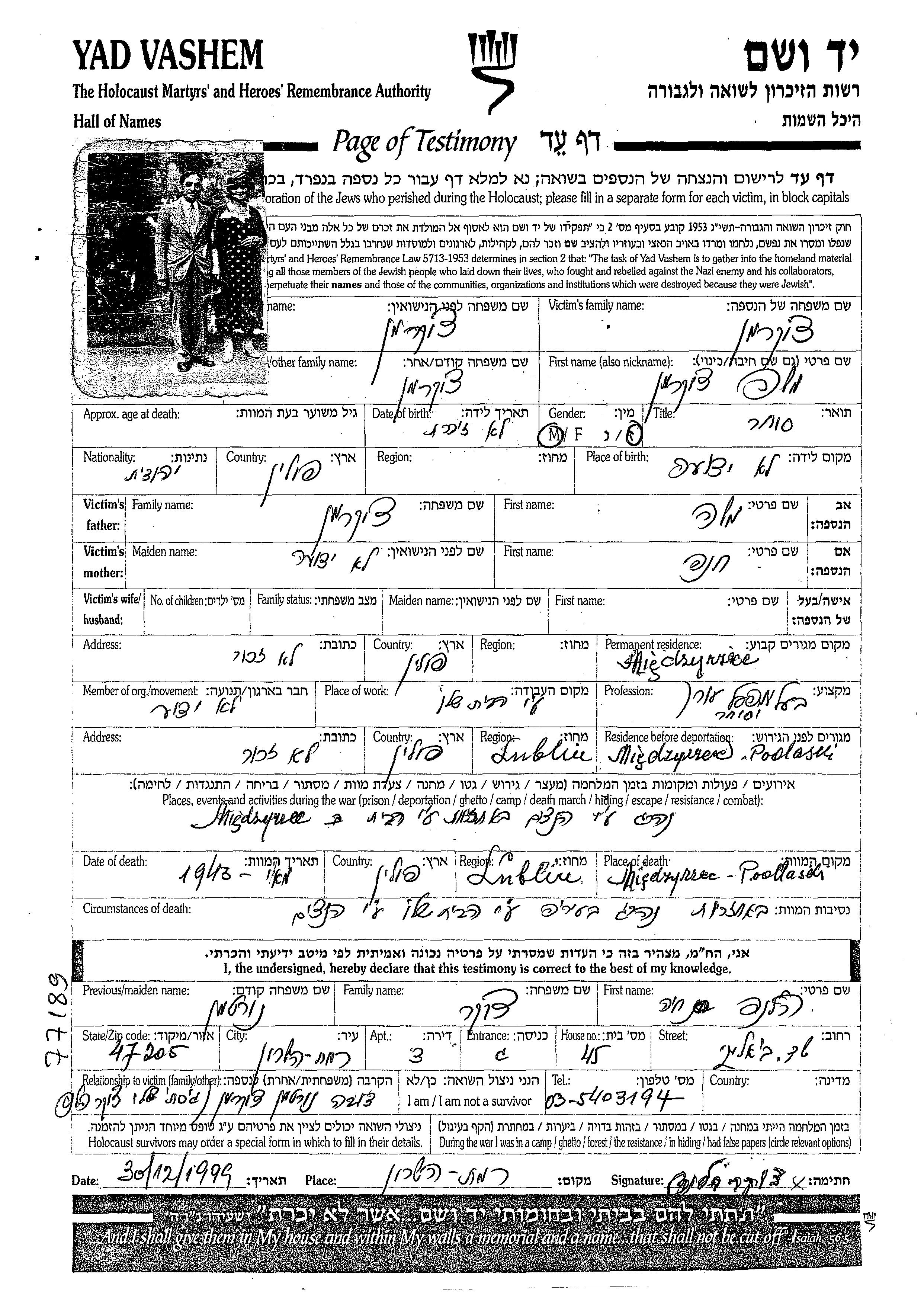Moshe wurde in der Schoah ermordet. Todesort: Miedzyrzecz, Polen im Jahr 1943.