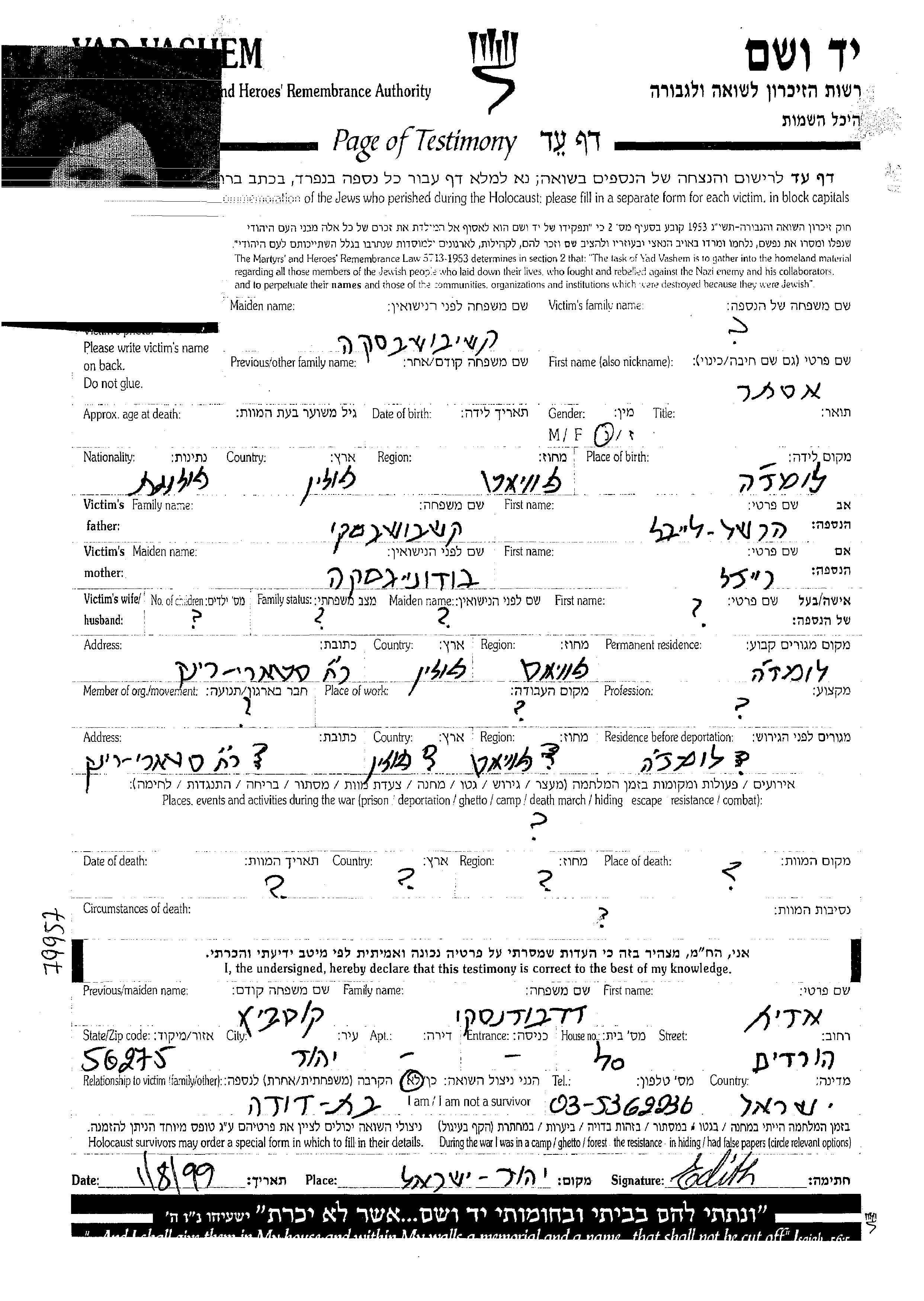 Ester Name unbekannt, geb. Kshivoshevski wurde in Łomża, Polen geboren. Vor dem Zweiten Weltkrieg lebte sie in Łomża, Polen.