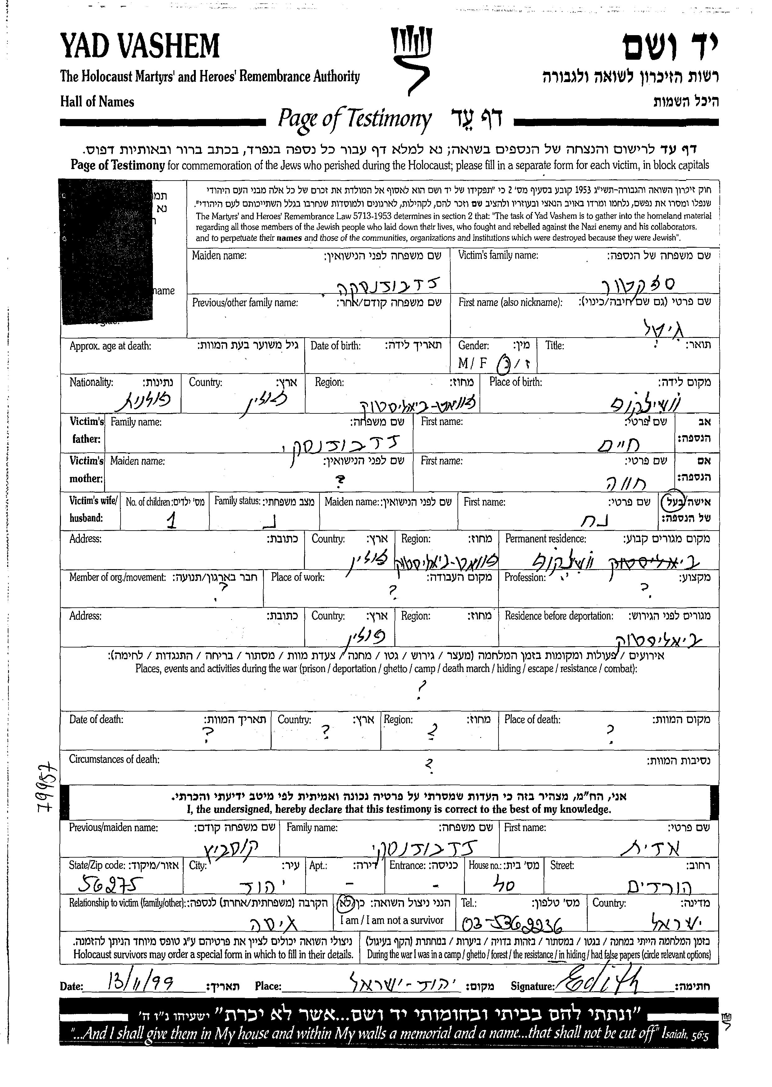 Spektor Zadbozanski Gitel Wasilkow, Polen Gedenkblatt