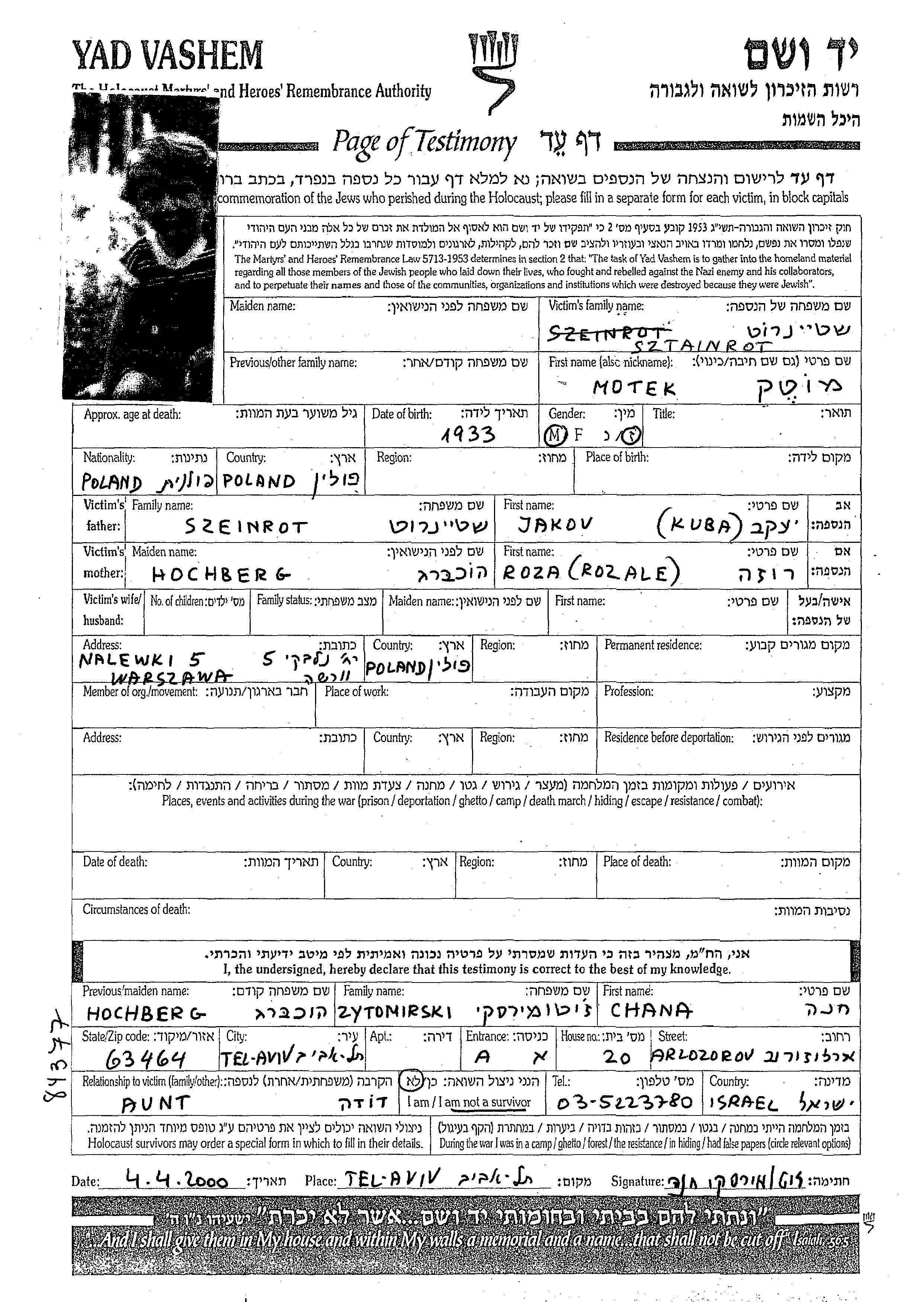 Motek wurde in der Schoah ermordet. Todesort: unbekannter Ort.