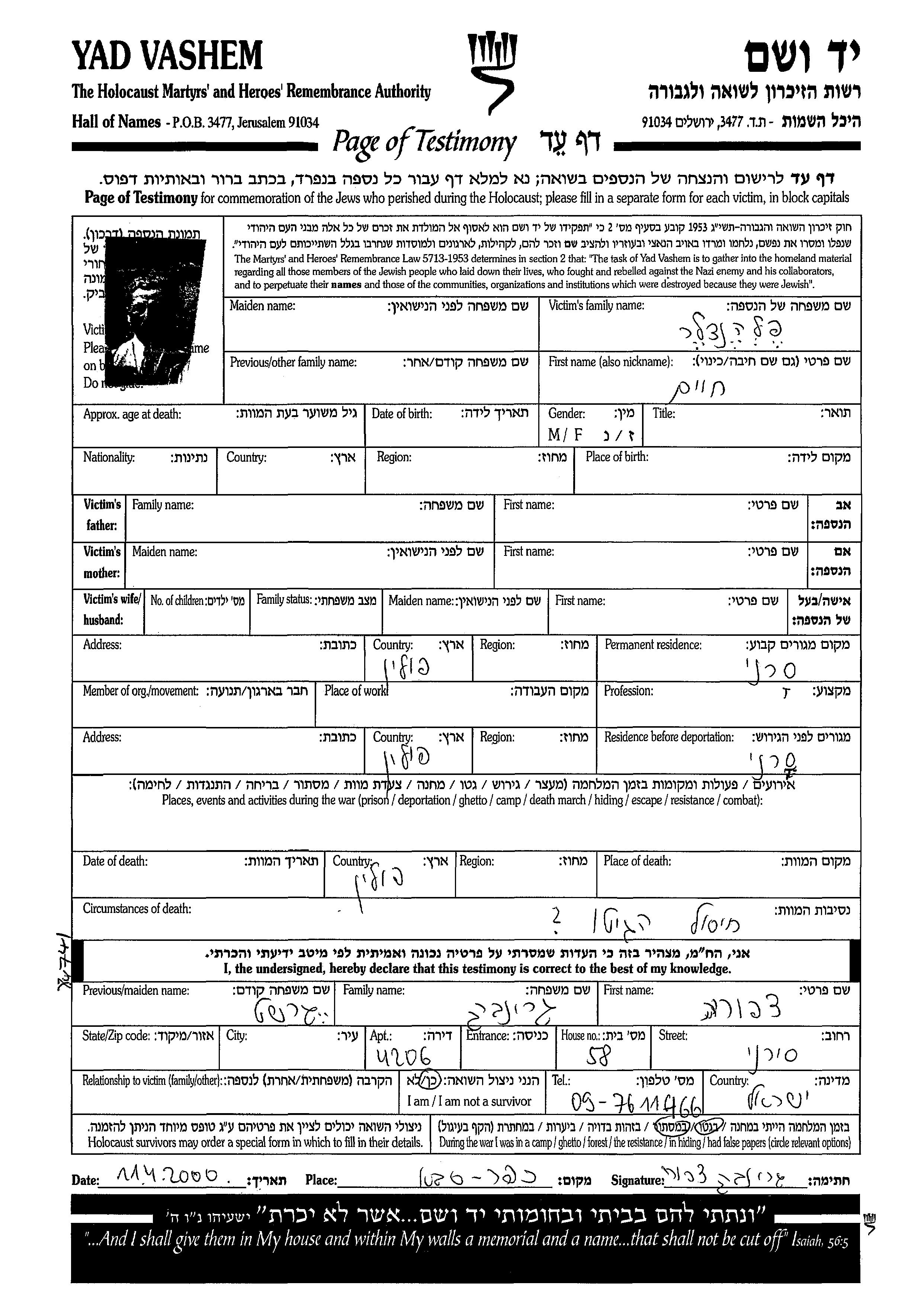 Khaim wurde in der Schoah ermordet. Todesort: Polen.