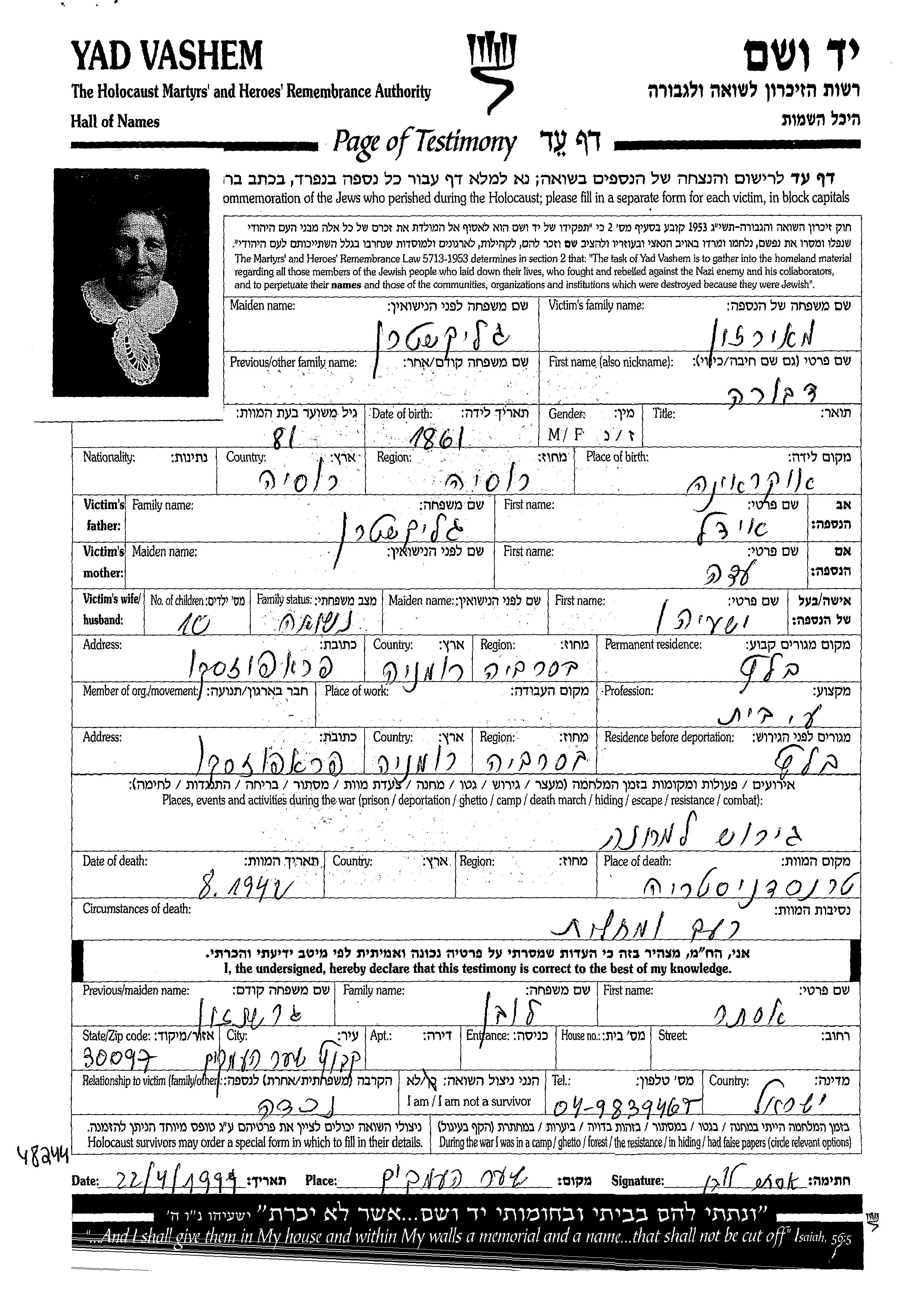 Dvora wurde in der Schoah ermordet. Todesort: Transnistria, Ukraine (UdSSR) im Jahr 1942.