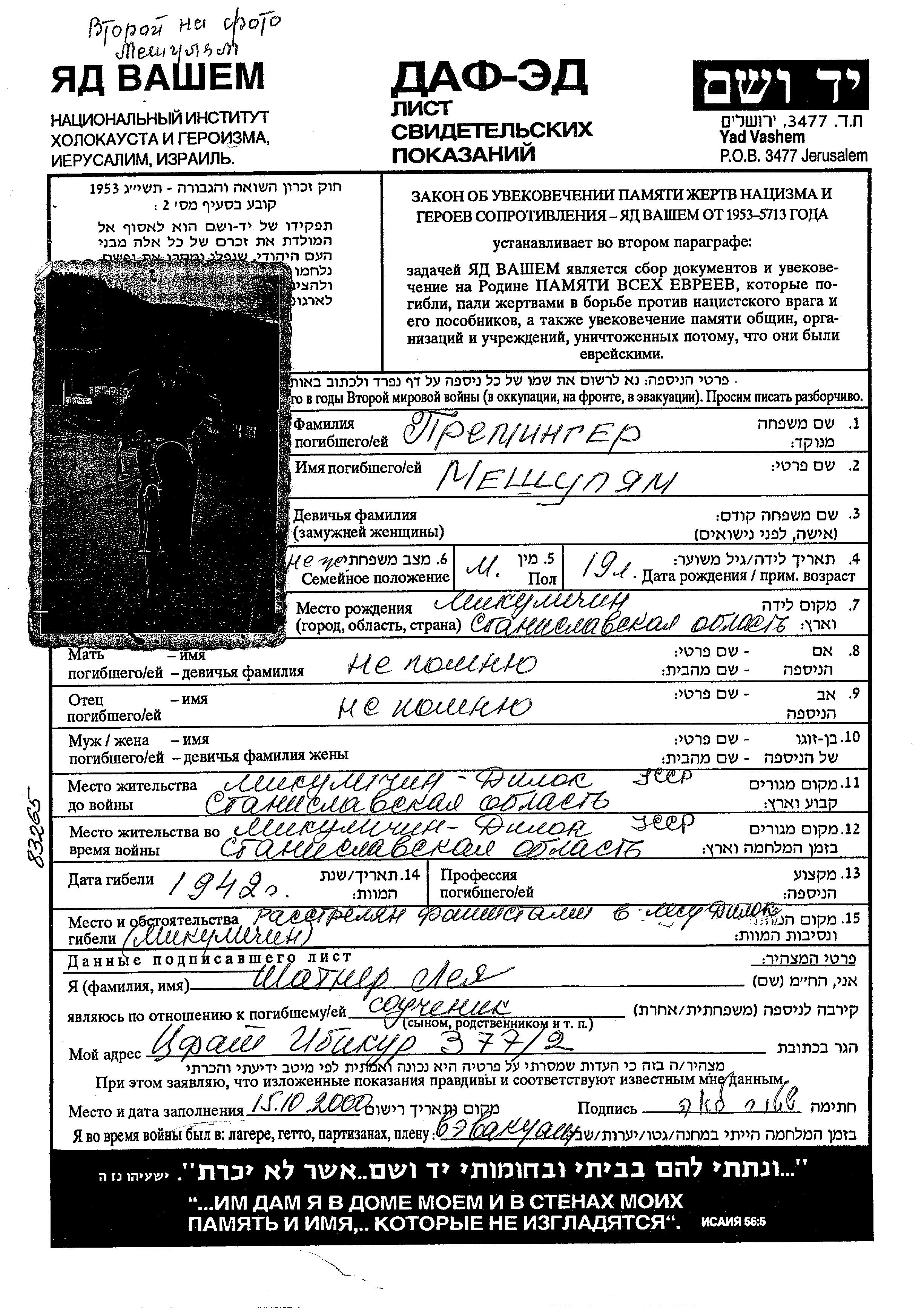 Meshulyam wurde in der Schoah ermordet. Todesort: Mikuliczyn, Polen im Jahr 1942.