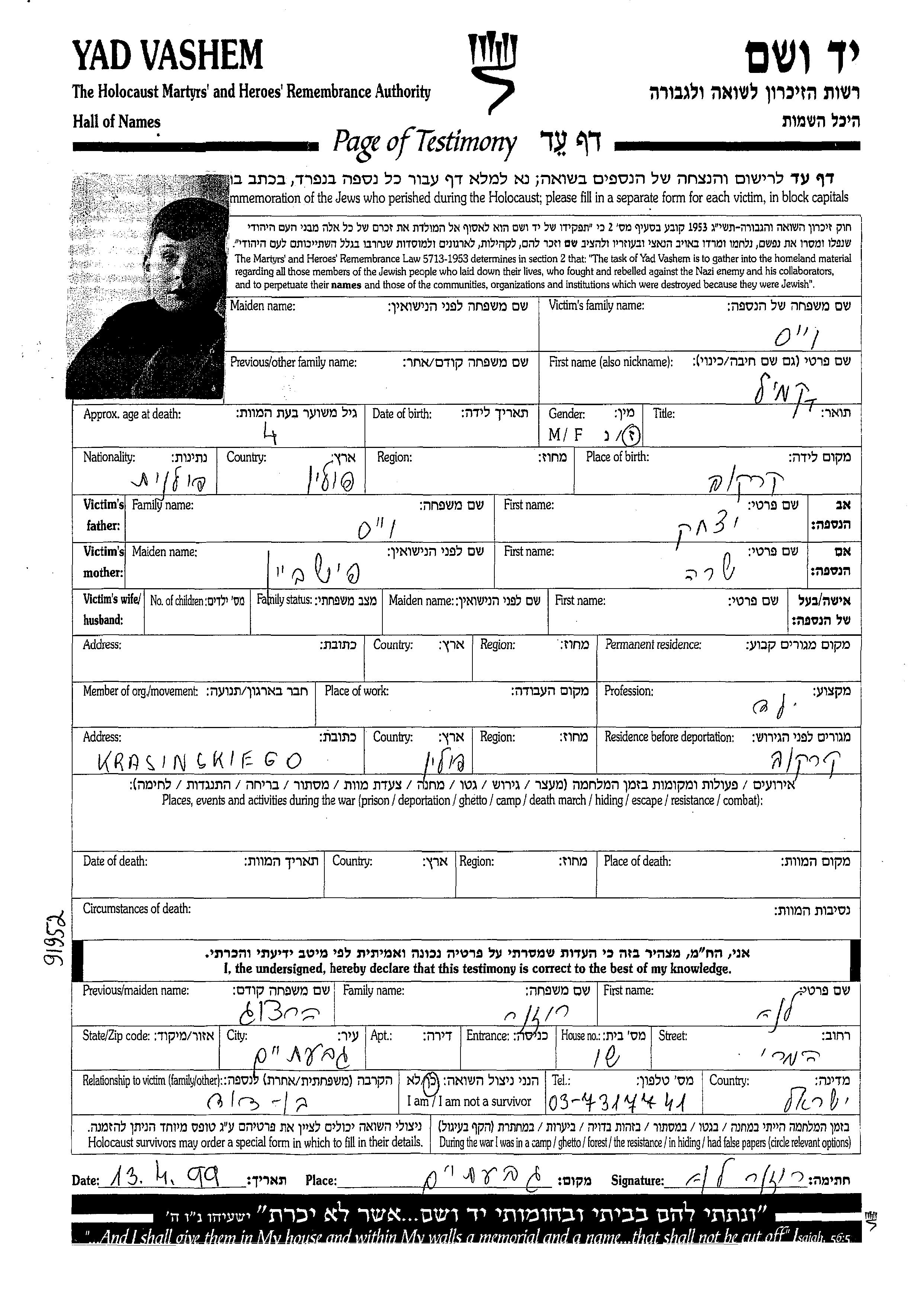 Kamil wurde in der Schoah ermordet. Todesort: unbekannter Ort.