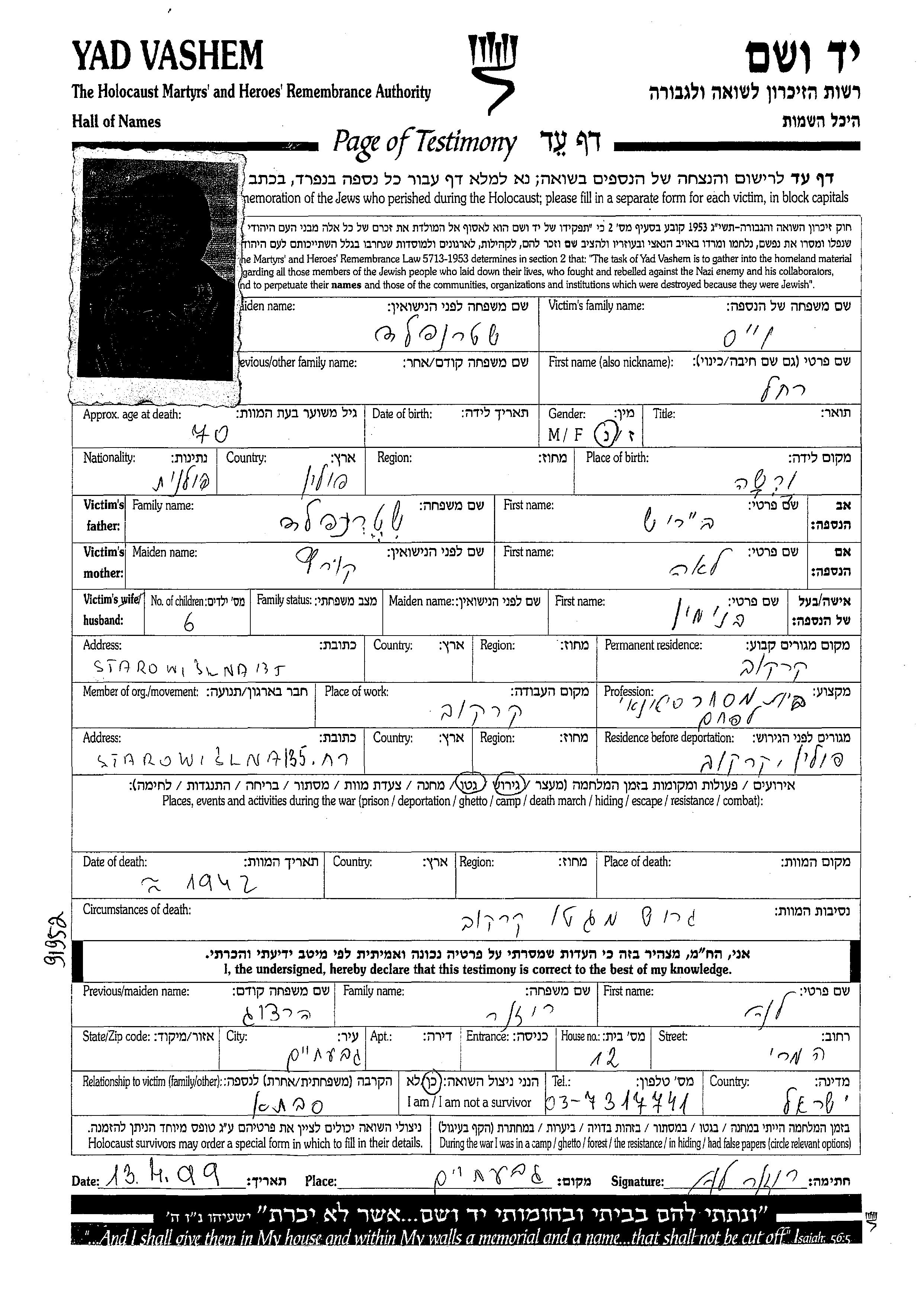 Rakhel wurde in der Schoah ermordet. Todesort: unbekannter Ort im Jahr 1942.