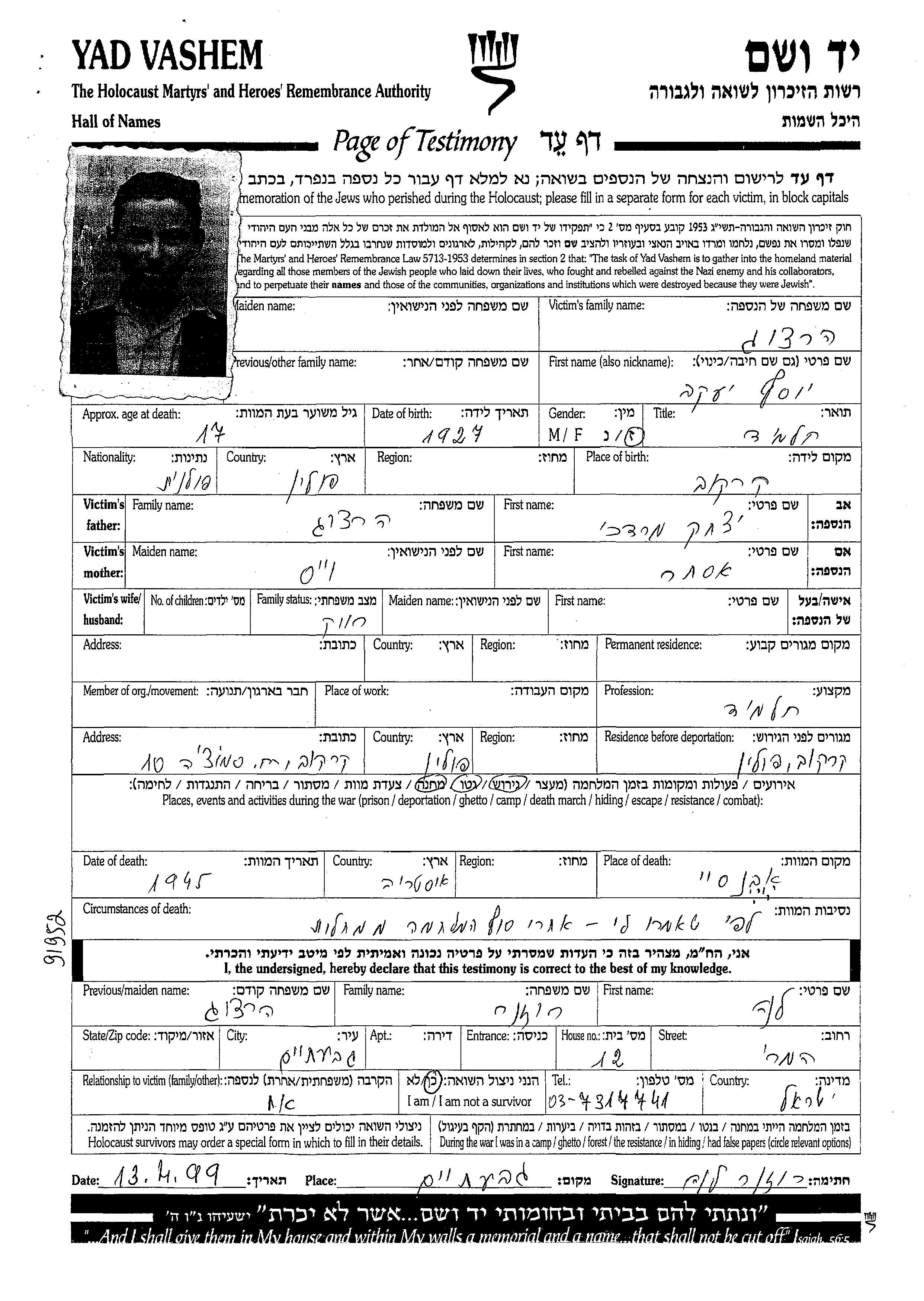 Yosef Yaakov wurde in der Schoah ermordet. Todesort: Ebensee, Österreich im Jahr 1945.