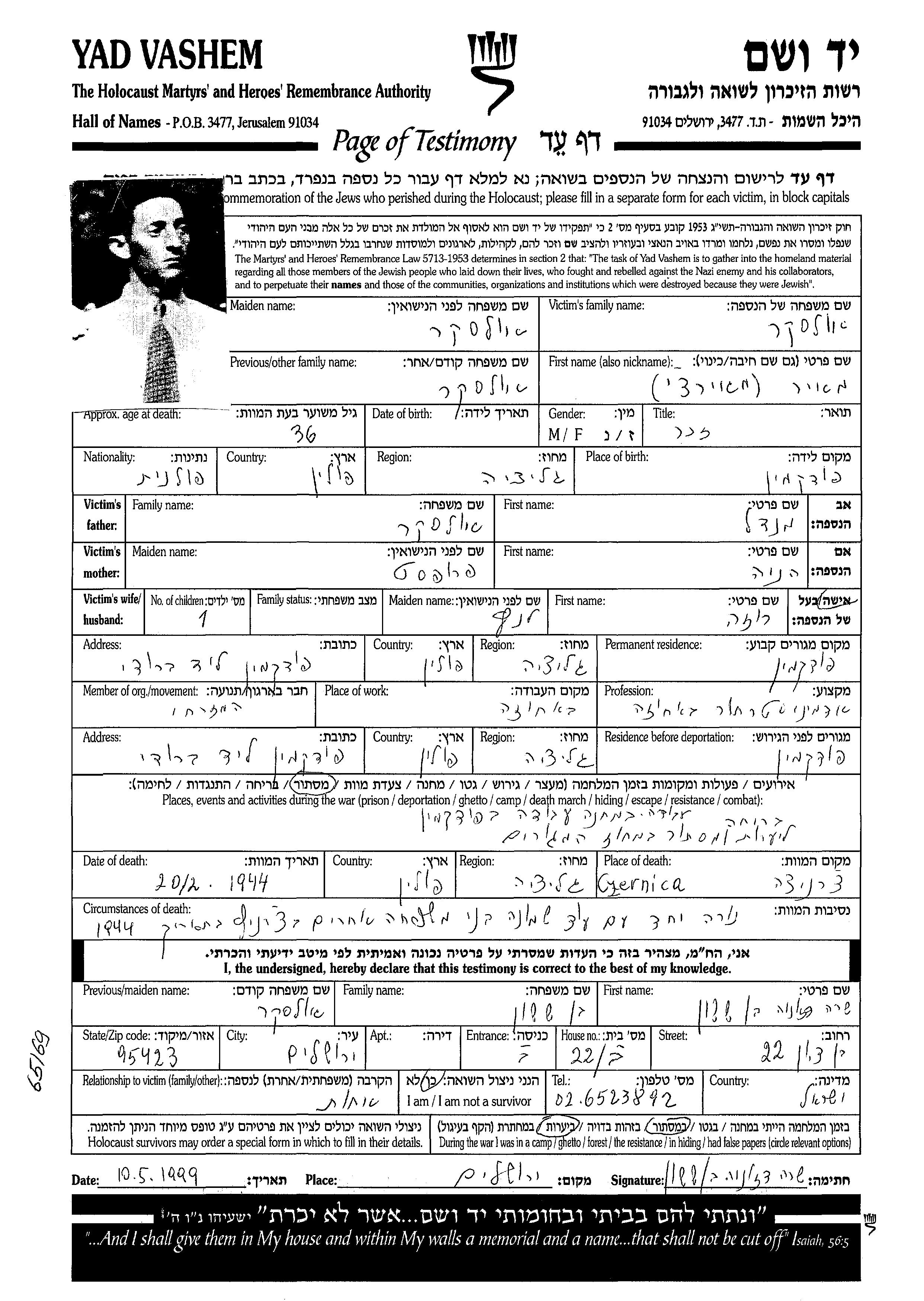 Meir wurde in der Schoah ermordet. Todesort: Czernica, Polen im Jahr 1944.