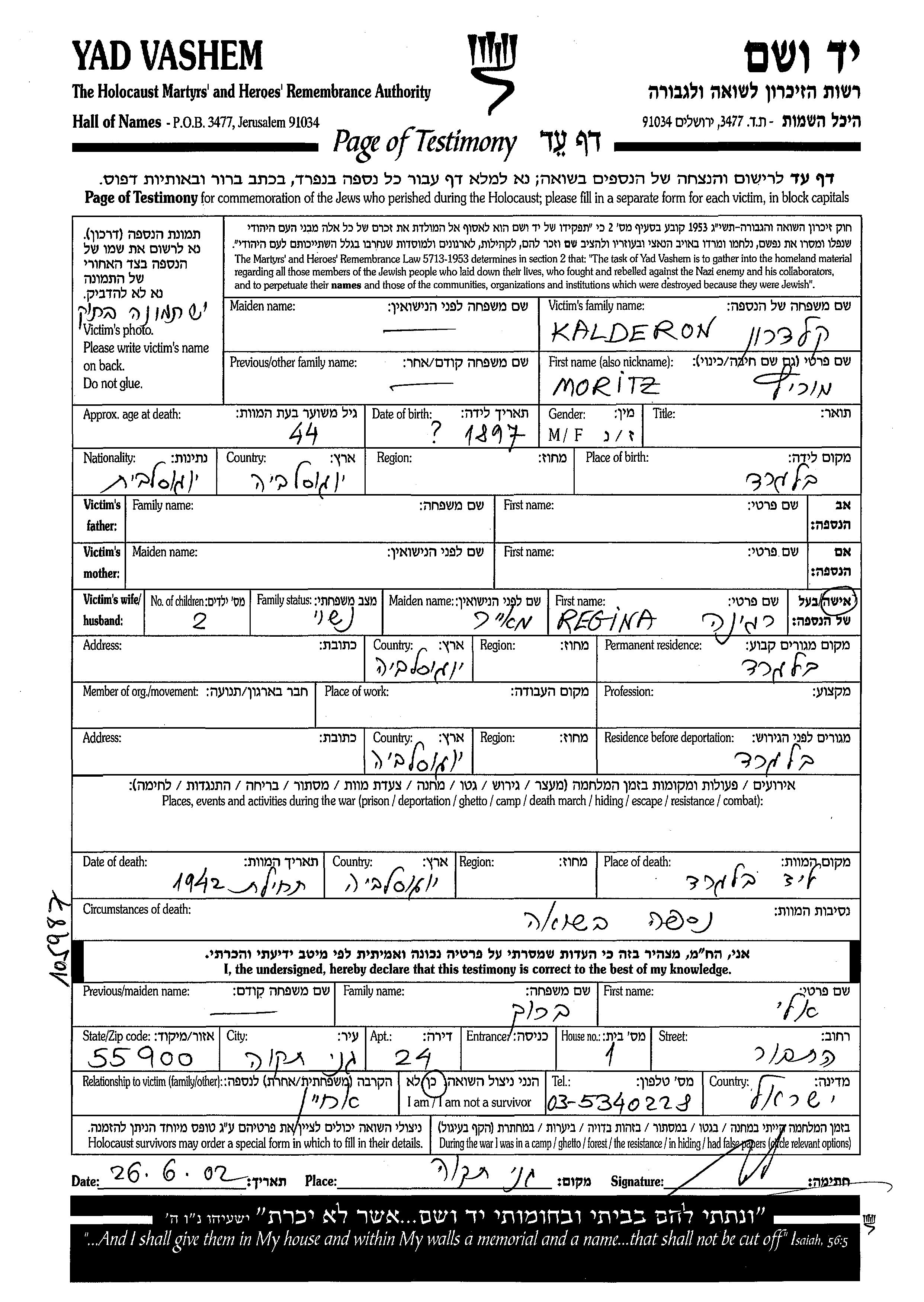 | Kalderon | Moritz | 1897 | Beograd, Jugoslawien | Photos |