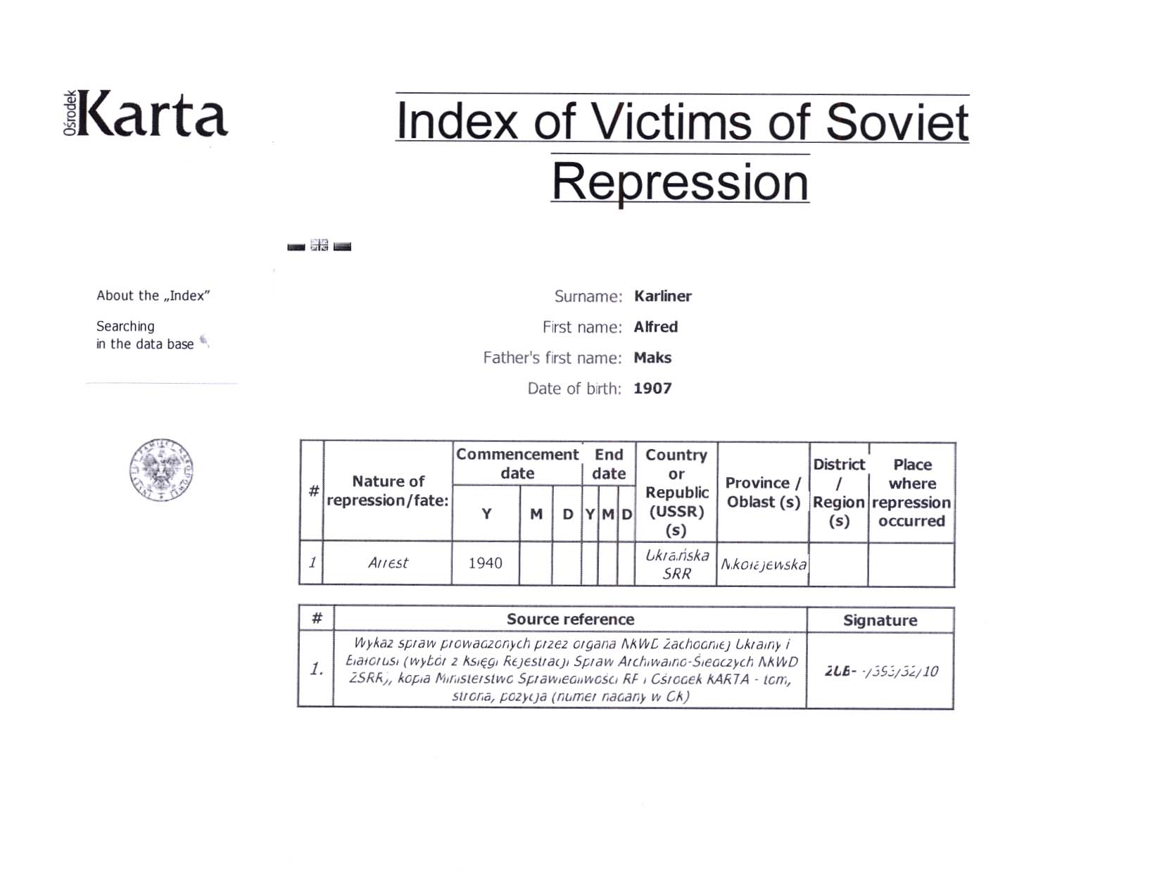 Karliner | Alfred | 1907 | Katowice, Polen | Photos |