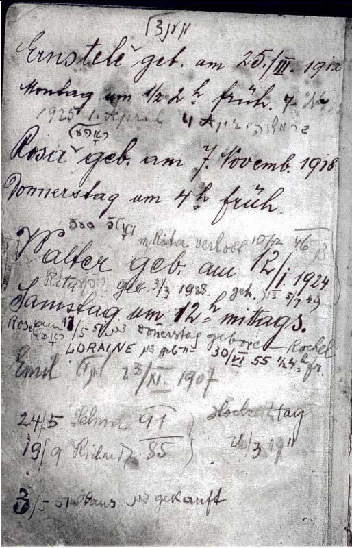 Digital File :p80138. Various dates, including birth dates, listed in the Siddur of Richard Elzas, father of Ernst Elzas.