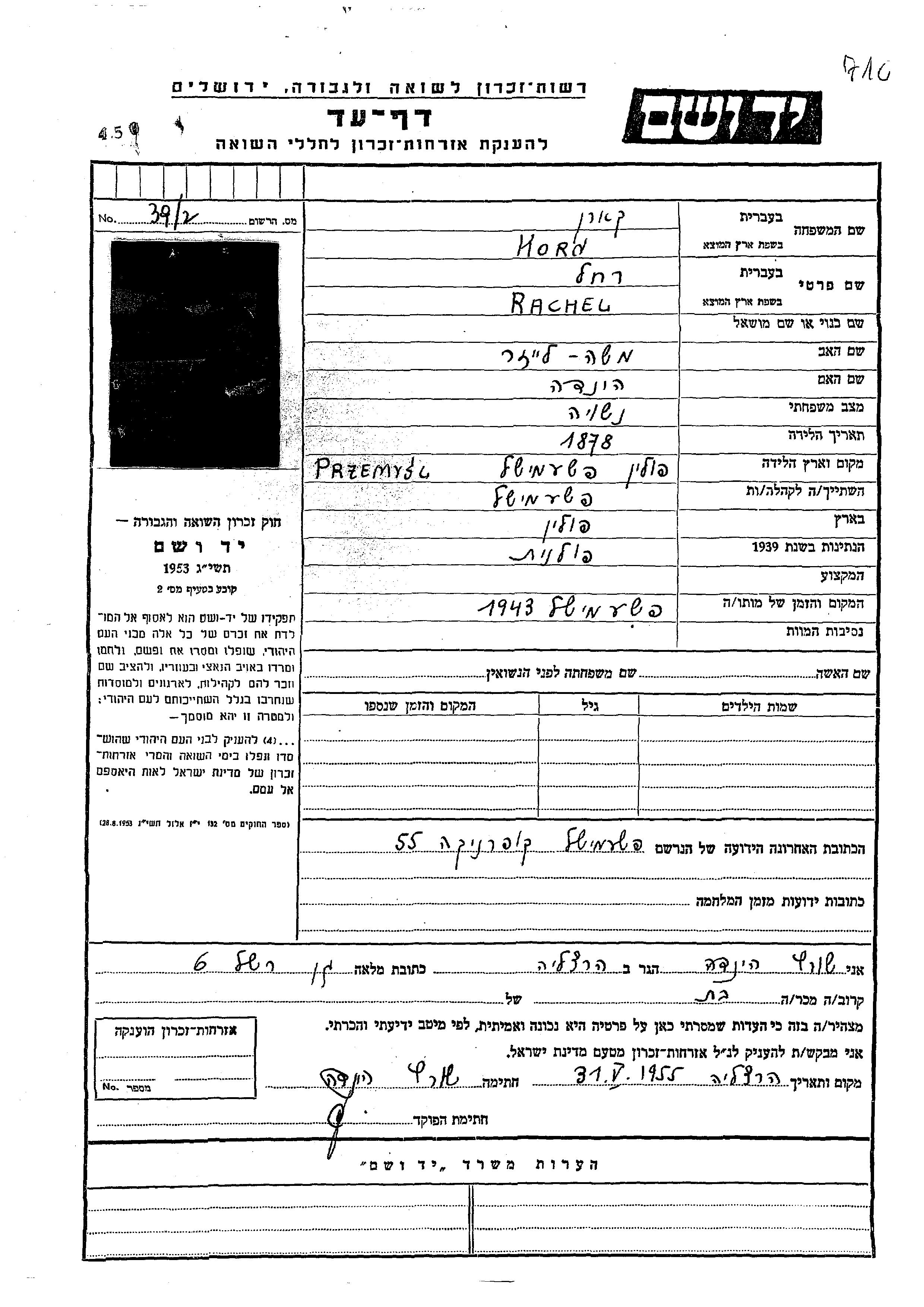 Rachel wurde in der Schoah ermordet. Todesort: Przemysl, Polen im Jahr 1943.