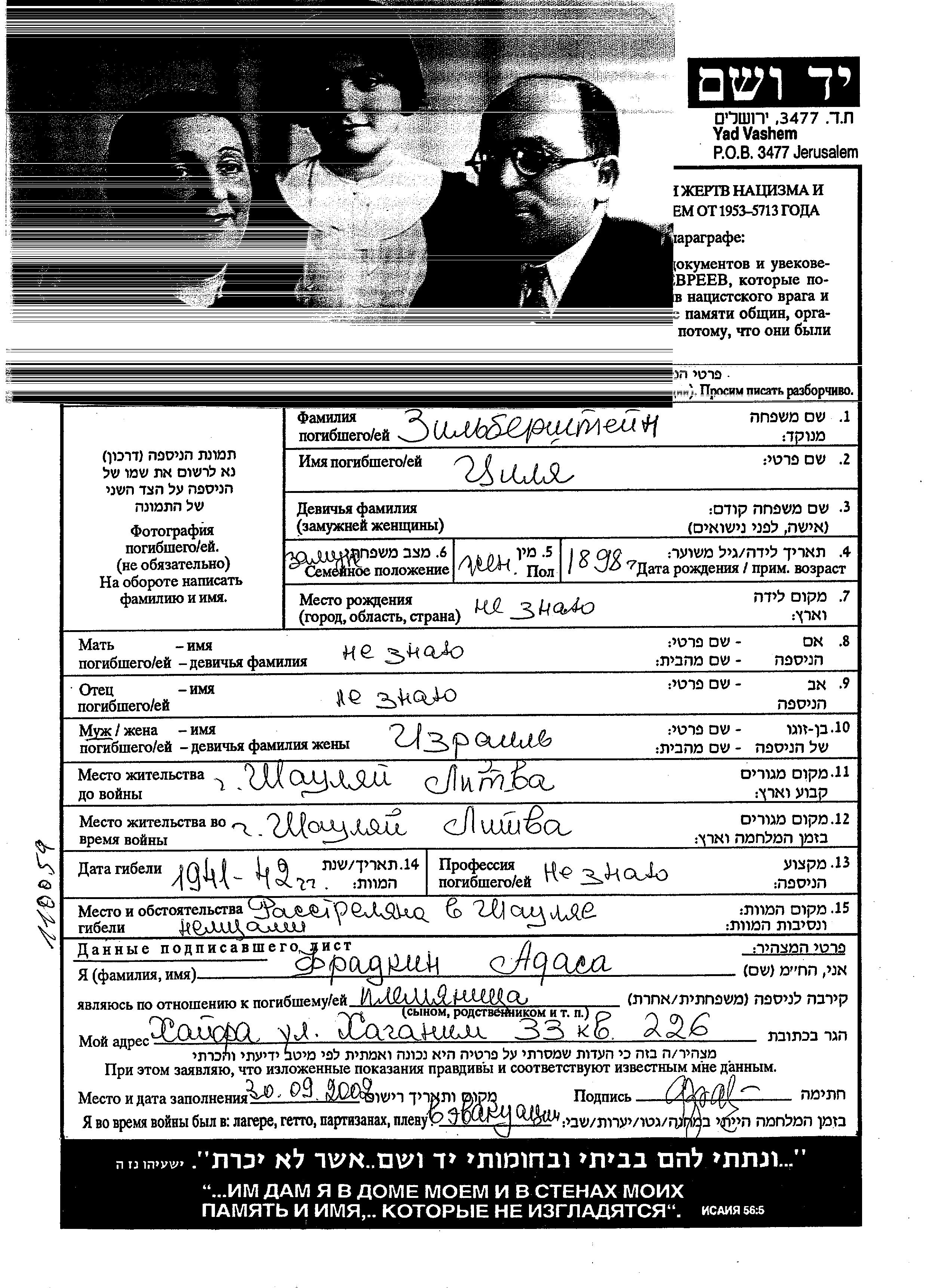 Zilbershtein | Tzilya | 1898 | Shaulyay, Litauen | Gedenkblatt |