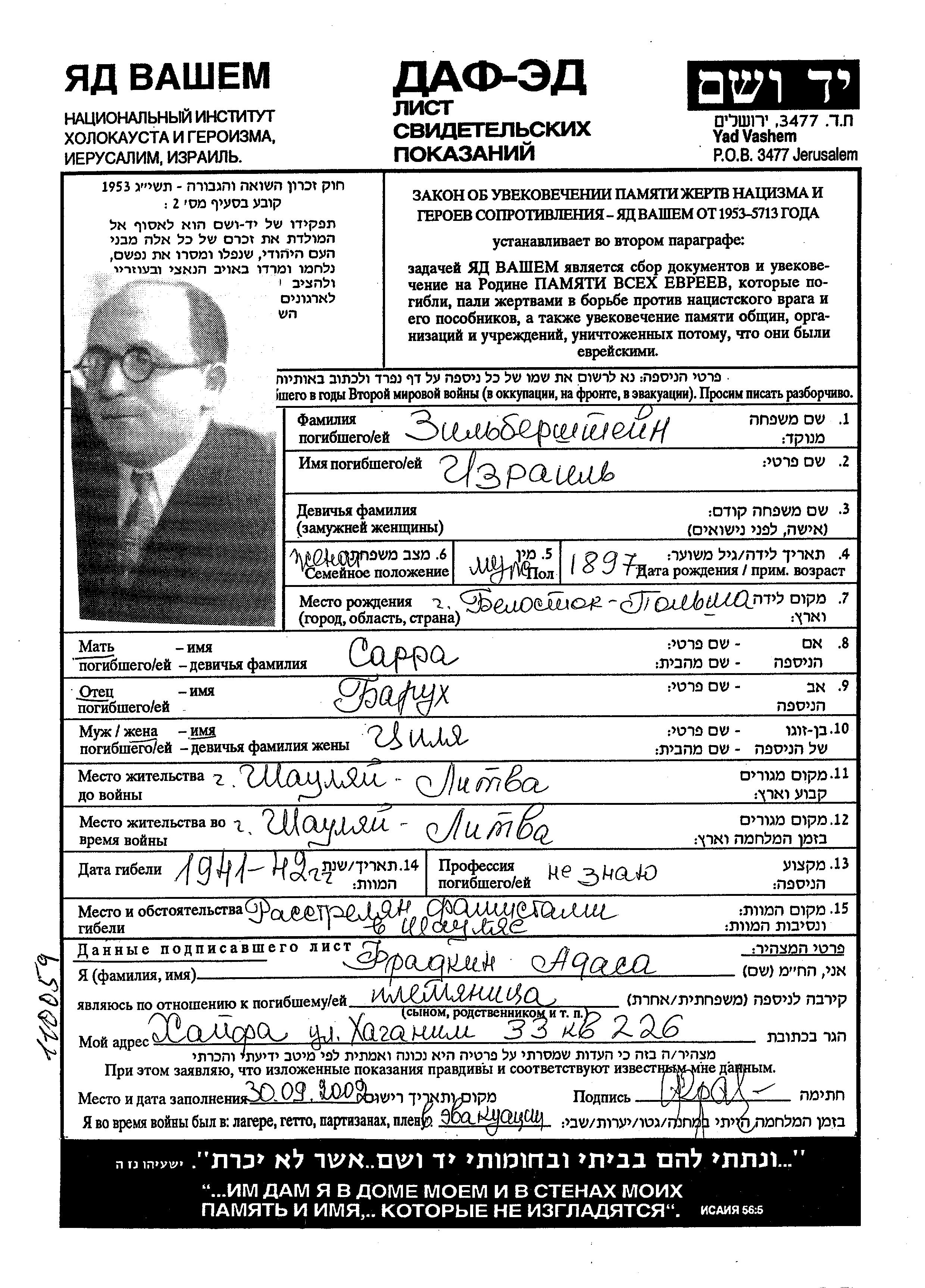 Izrail wurde in der Schoah ermordet. Todesort: Siauliai, Litauen im Jahr 1941.