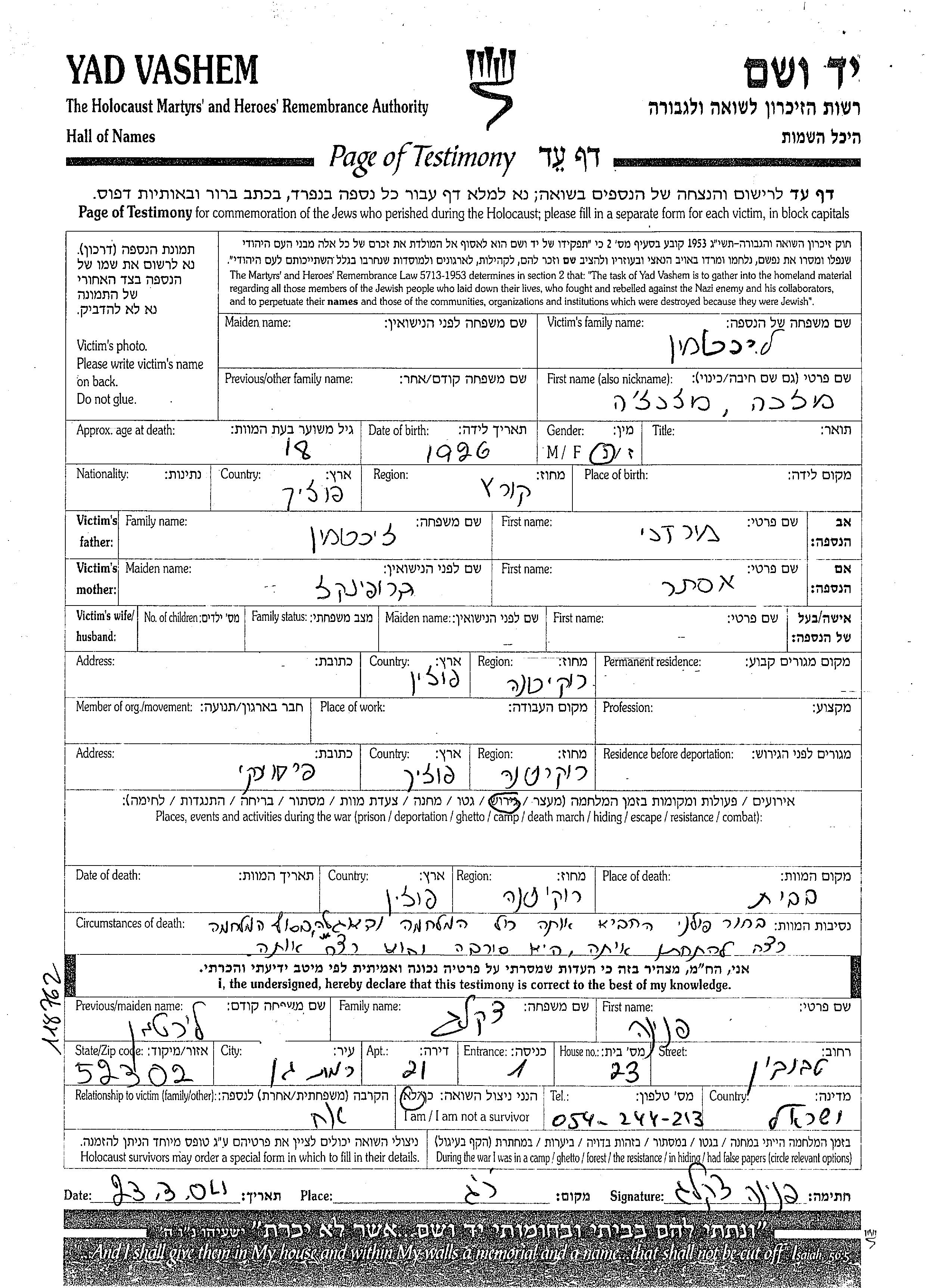 Likhtman Malka 1926 Rokitna, Polen Gedenkblatt