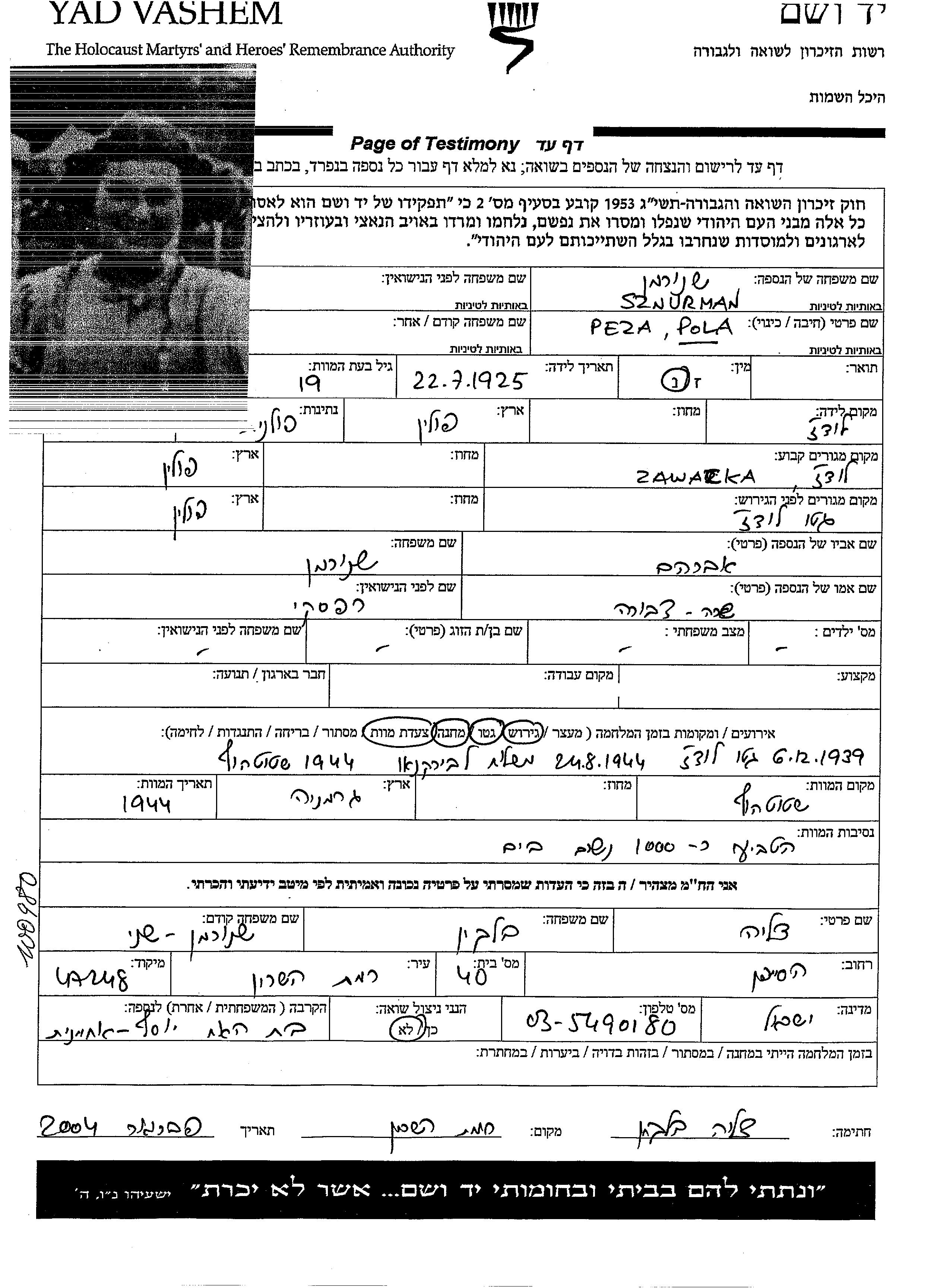 Peza Pola Sznurman wurde im Jahr 1925 in Łódź, Polen geboren. Vor dem Zweiten Weltkrieg lebte sie in Łódź, Polen.