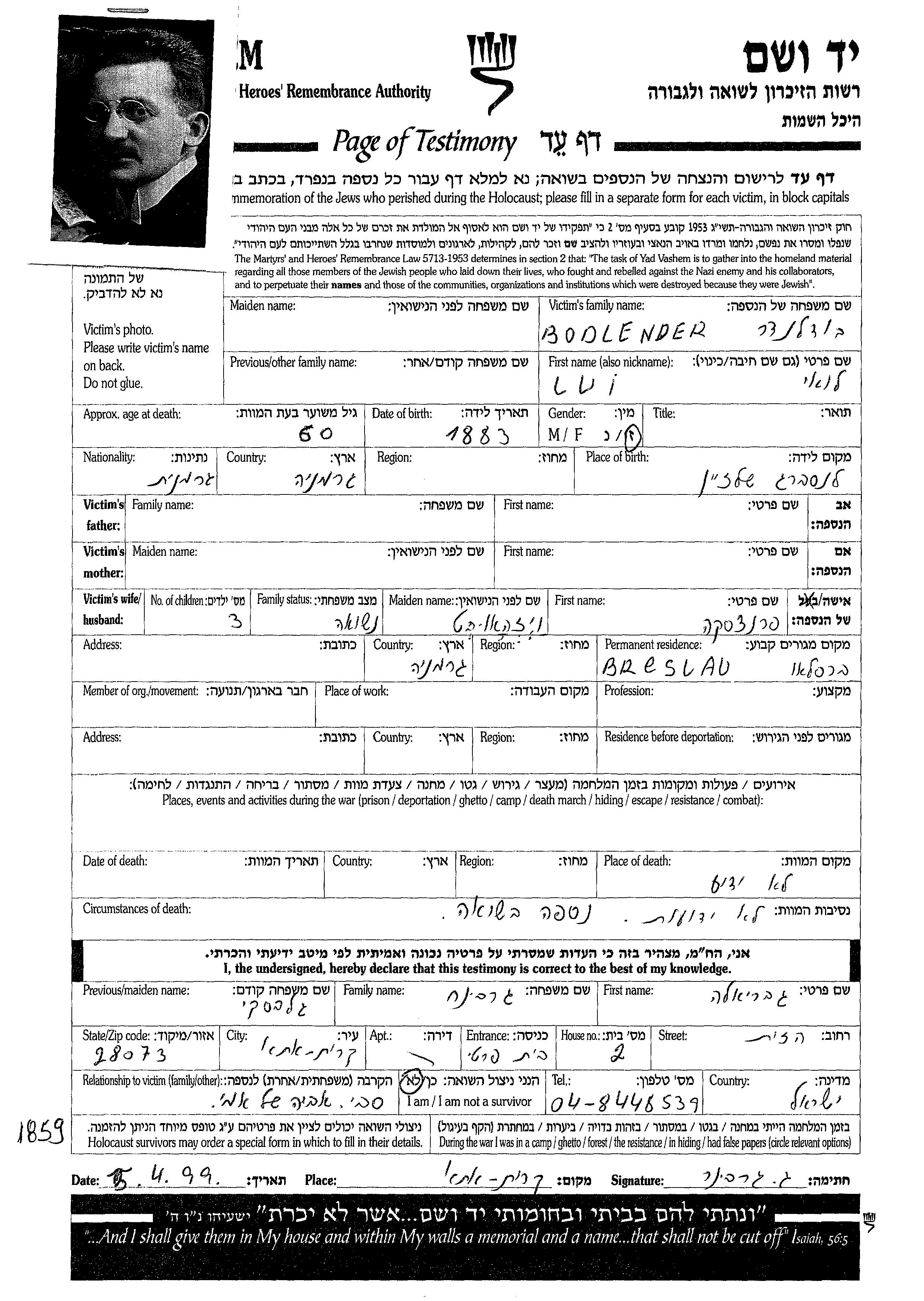 Luis Bodlender wurde im Jahr 1883 in Landsberg, Deutsches Reich geboren. Vor dem Zweiten Weltkrieg lebte er in Breslau, Deutsches Reich.