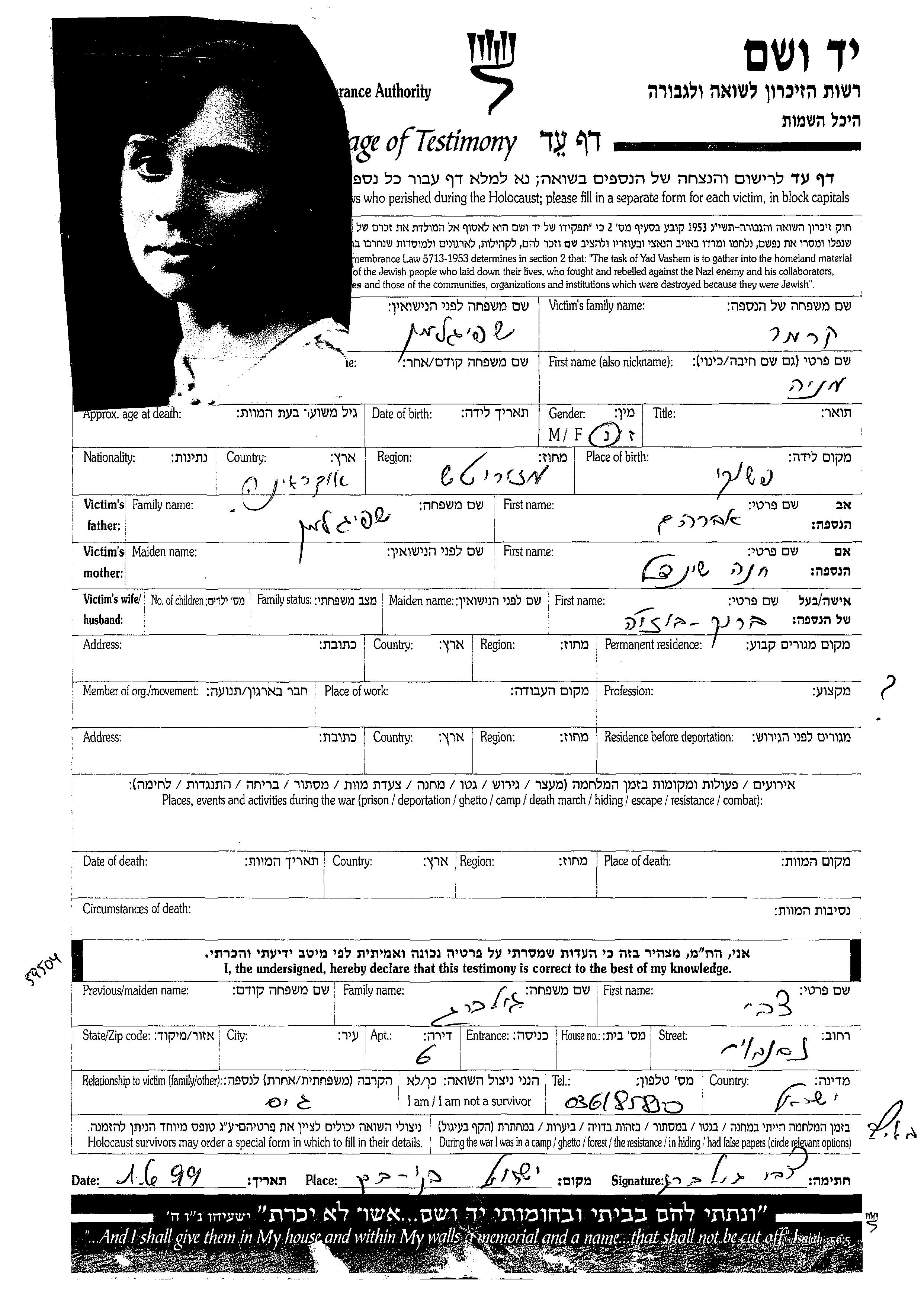 Mania wurde in der Schoah ermordet. Todesort: unbekannter Ort.